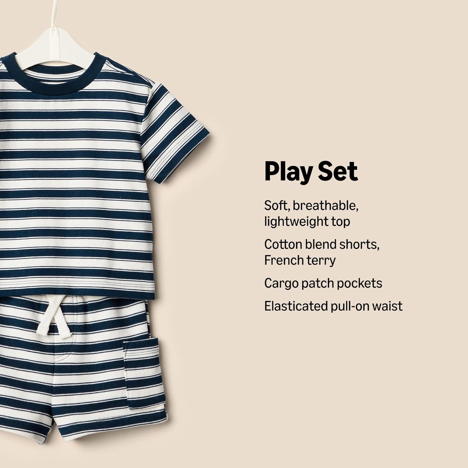 Amazon Essentials x Sofia Grainge Toddlers and Baby Boys’ Regular Fit T-Shirt and Short Set(Ivory Navy Stripe)