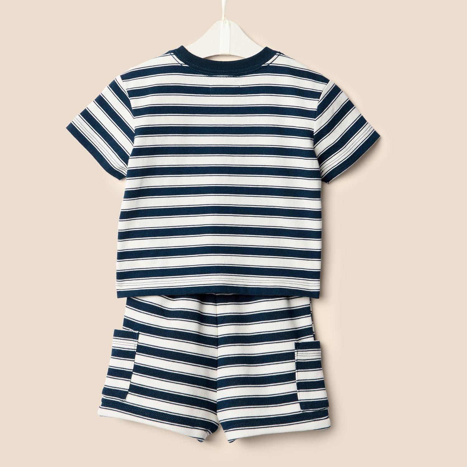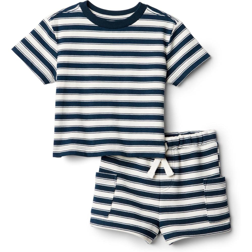 Amazon Essentials x Sofia Grainge Toddlers and Baby Boys' Regular Fit T-Shirt and Short Set(Ivory Navy Stripe)