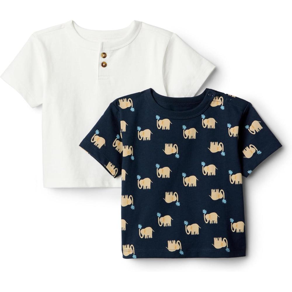 Amazon Essentials x Sofia Grainge Toddlers and Baby Boys’ Short Sleeve T-Shirts, Pack of 2(Elephants/Navy)