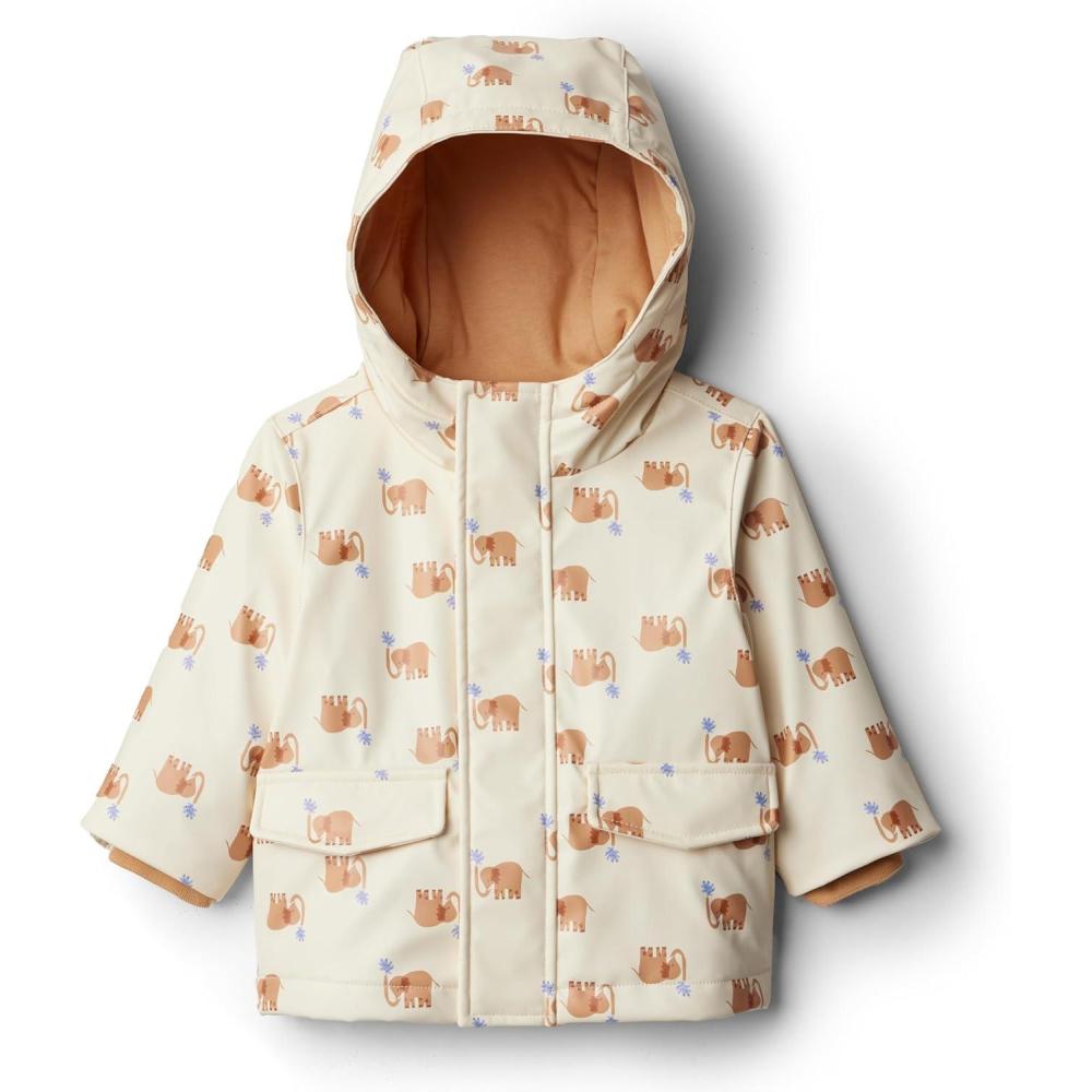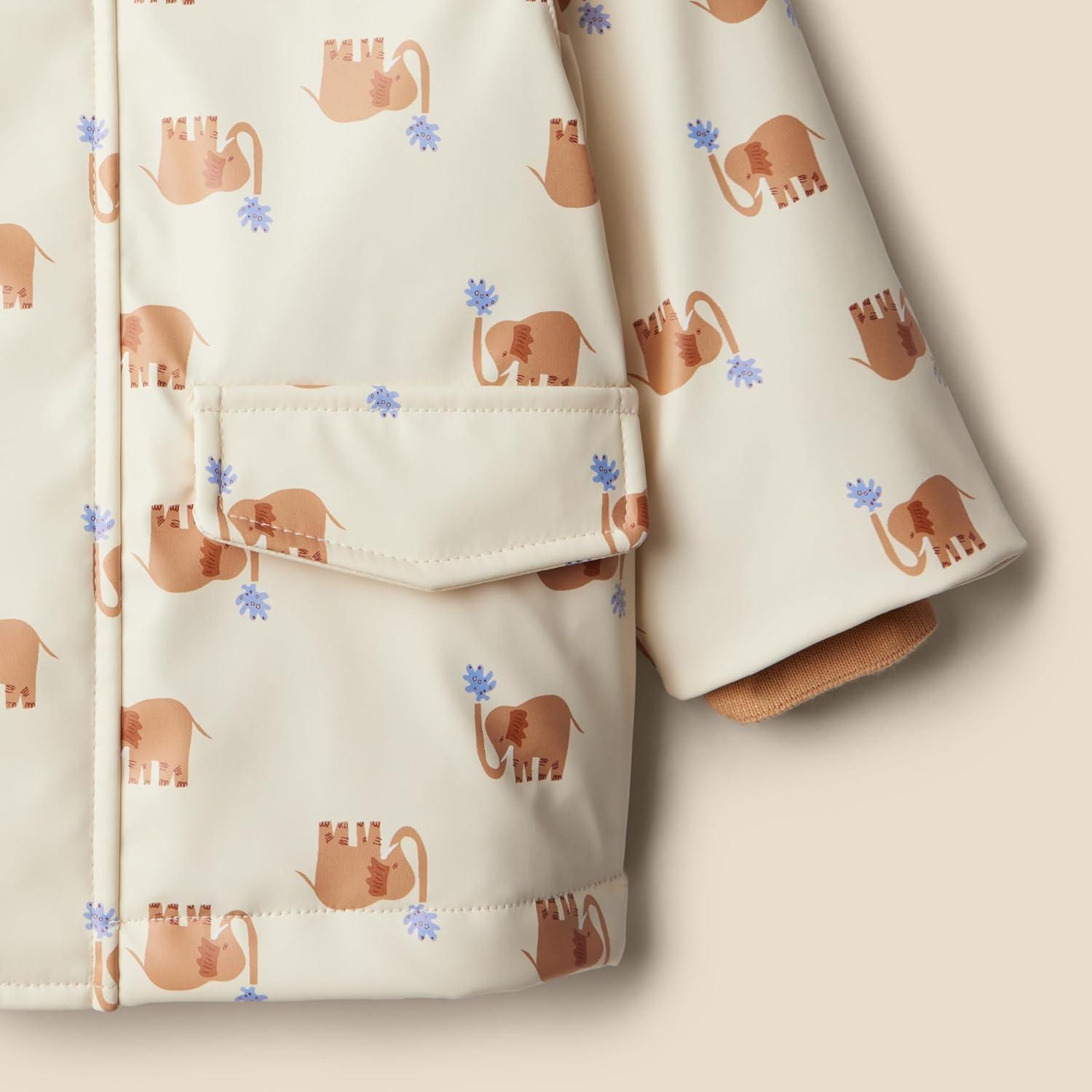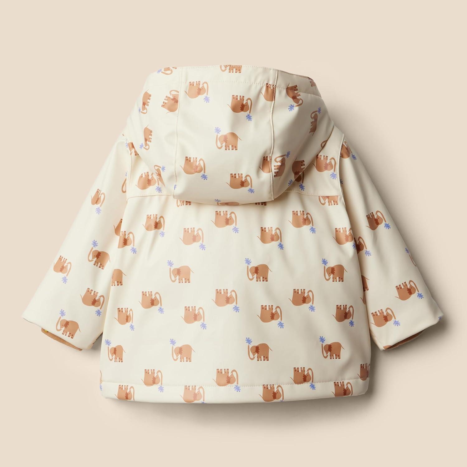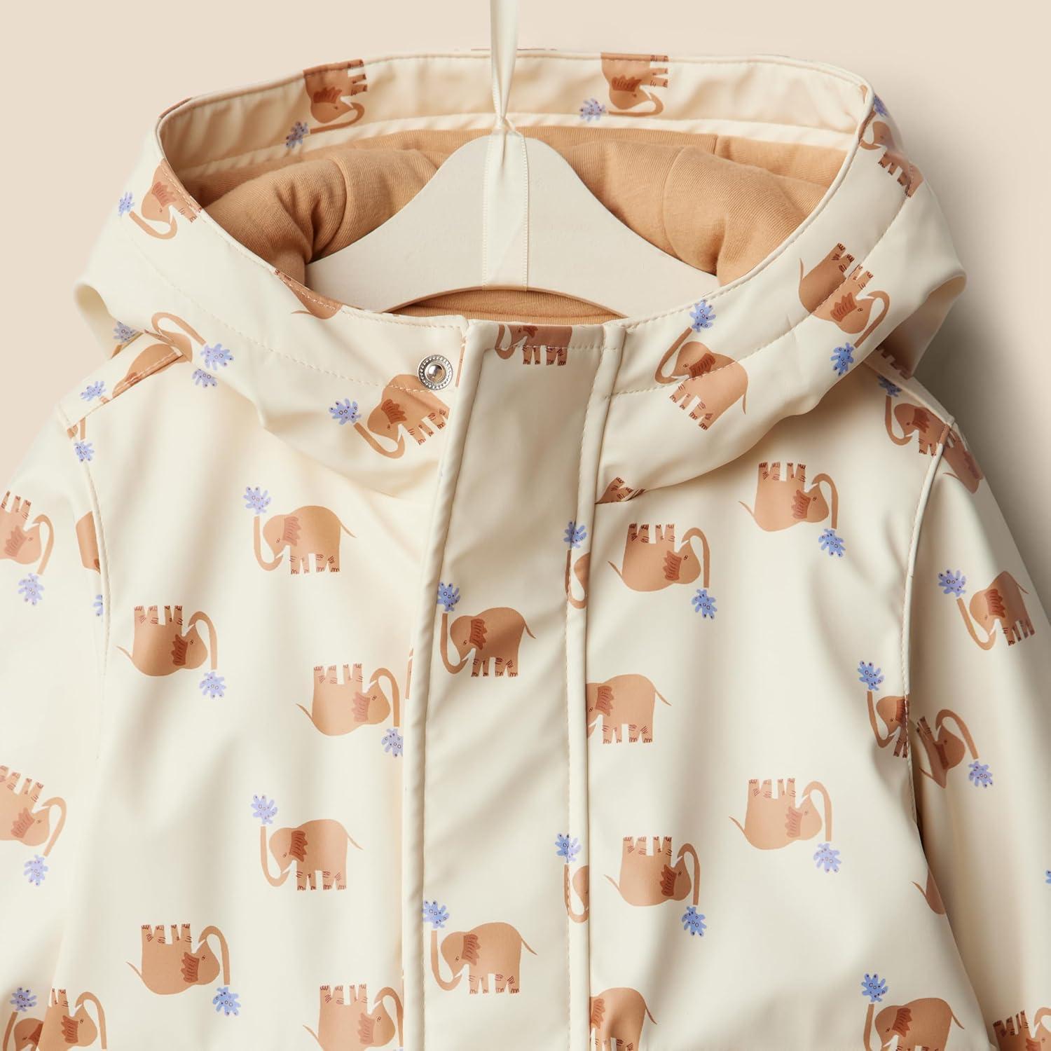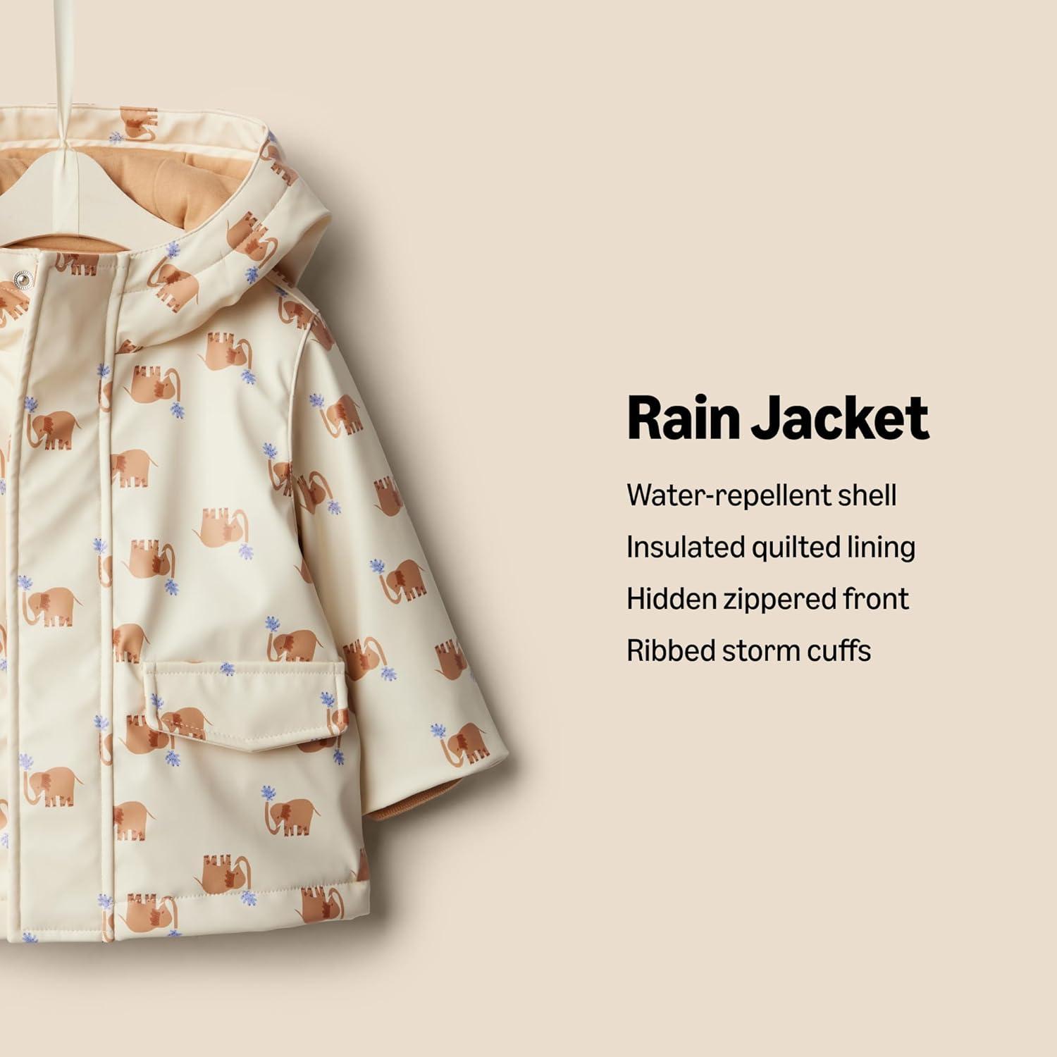 Amazon Essentials x Sofia Grainge Toddlers and Baby Boys' Water-Repellent Rain Jacket(Ivory Elephants)