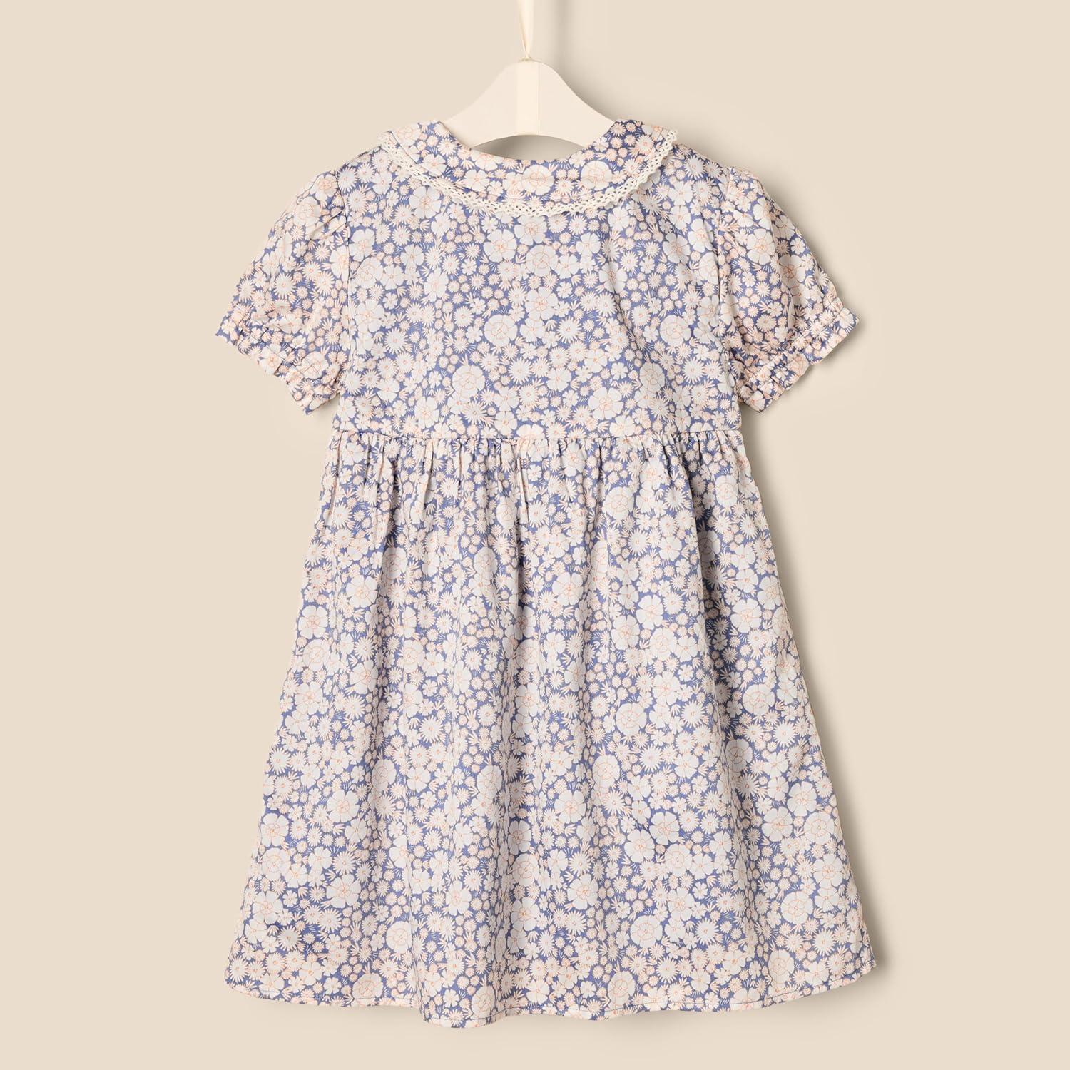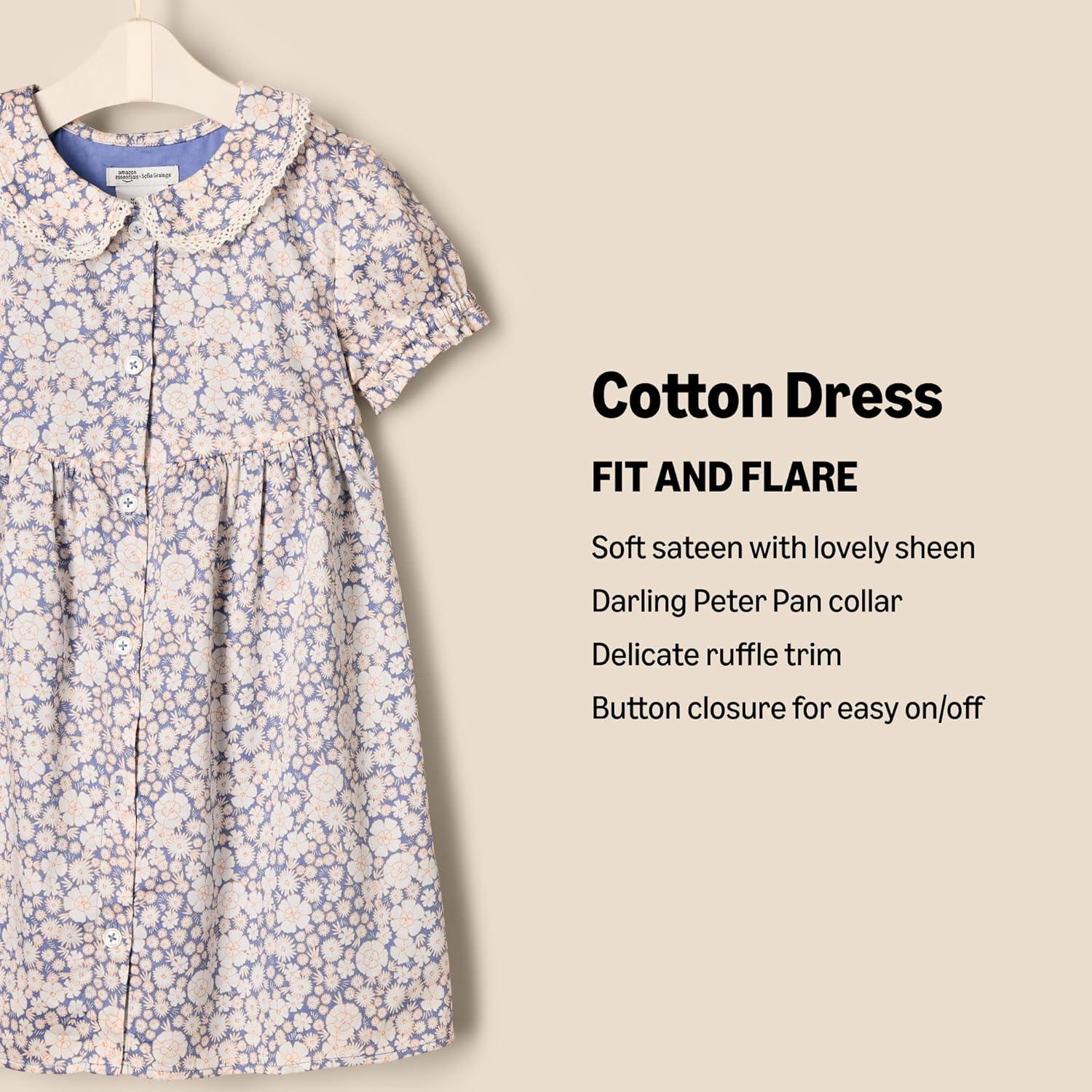 Amazon Essentials x Sofia Grainge Toddlers and Baby Girls’ Cotton Sateen Dress with Collar(Blue Ivory Delicate Floral)