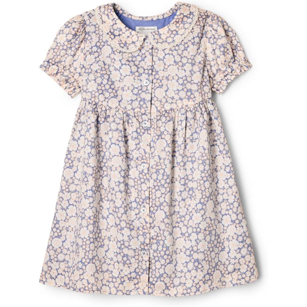 Amazon Essentials x Sofia Grainge Toddlers and Baby Girls' Cotton Sateen Dress with Collar(Blue Ivory Delicate Floral)