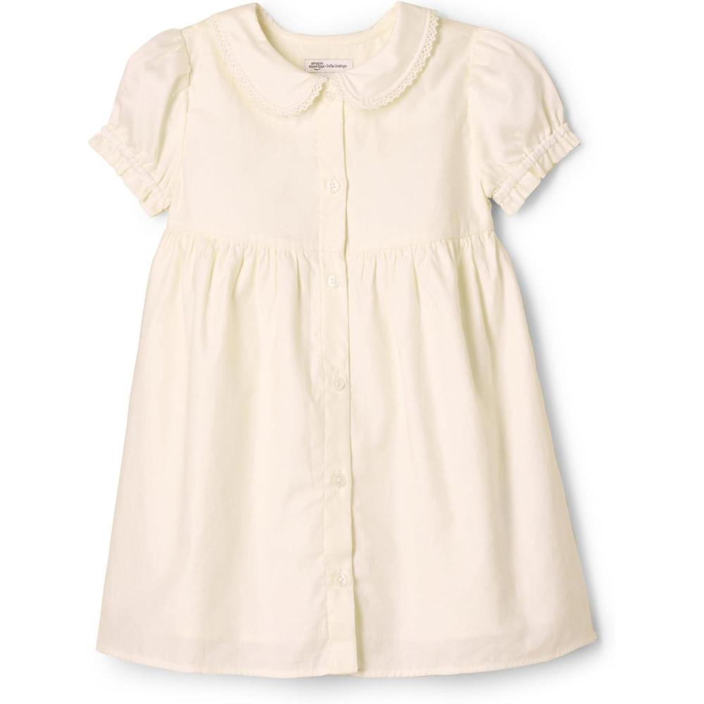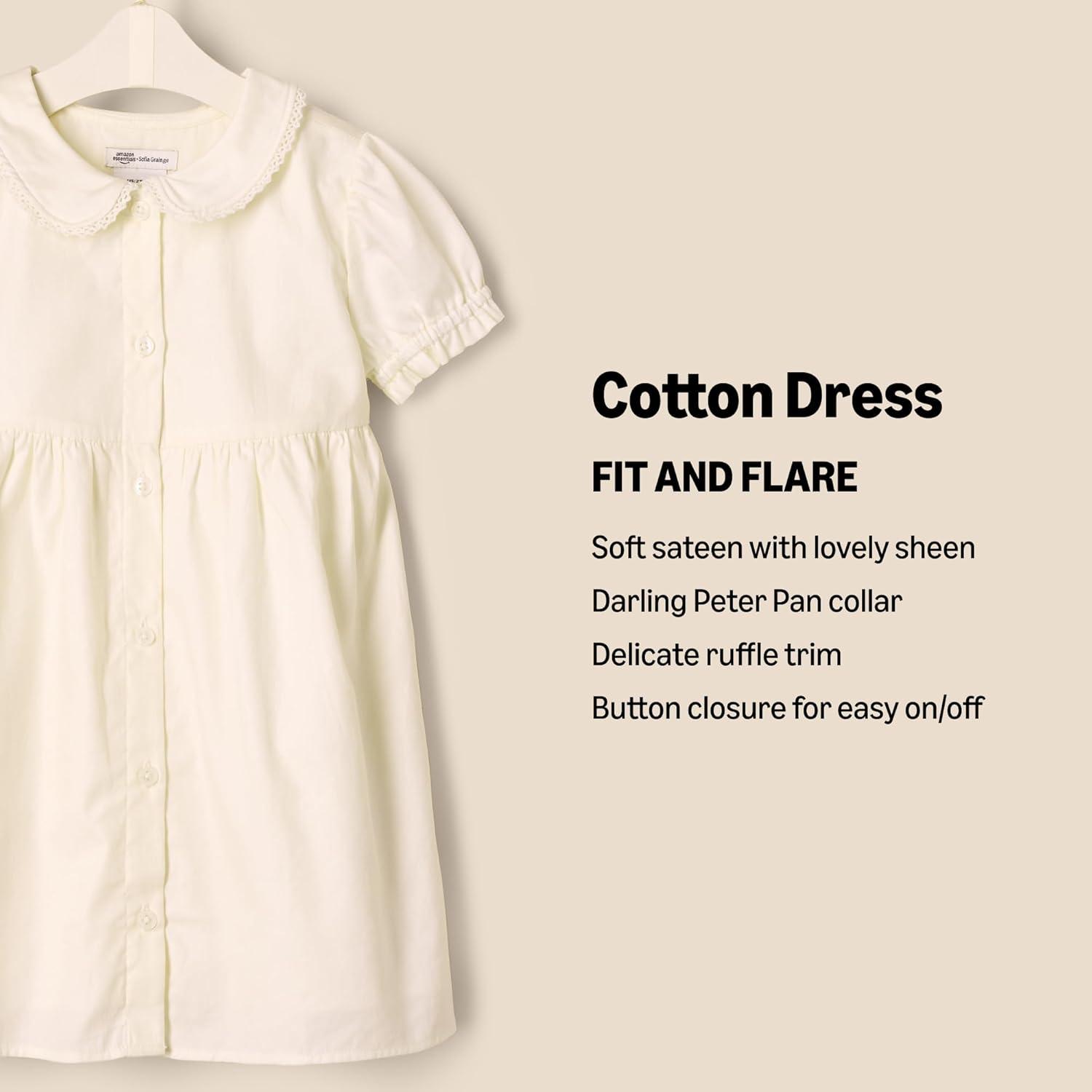Amazon Essentials x Sofia Grainge Toddlers and Baby Girls’ Cotton Sateen Dress with Collar(Ivory)