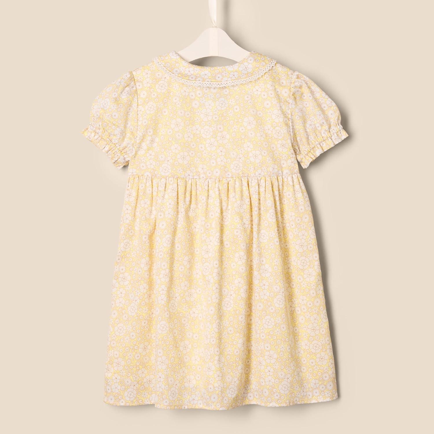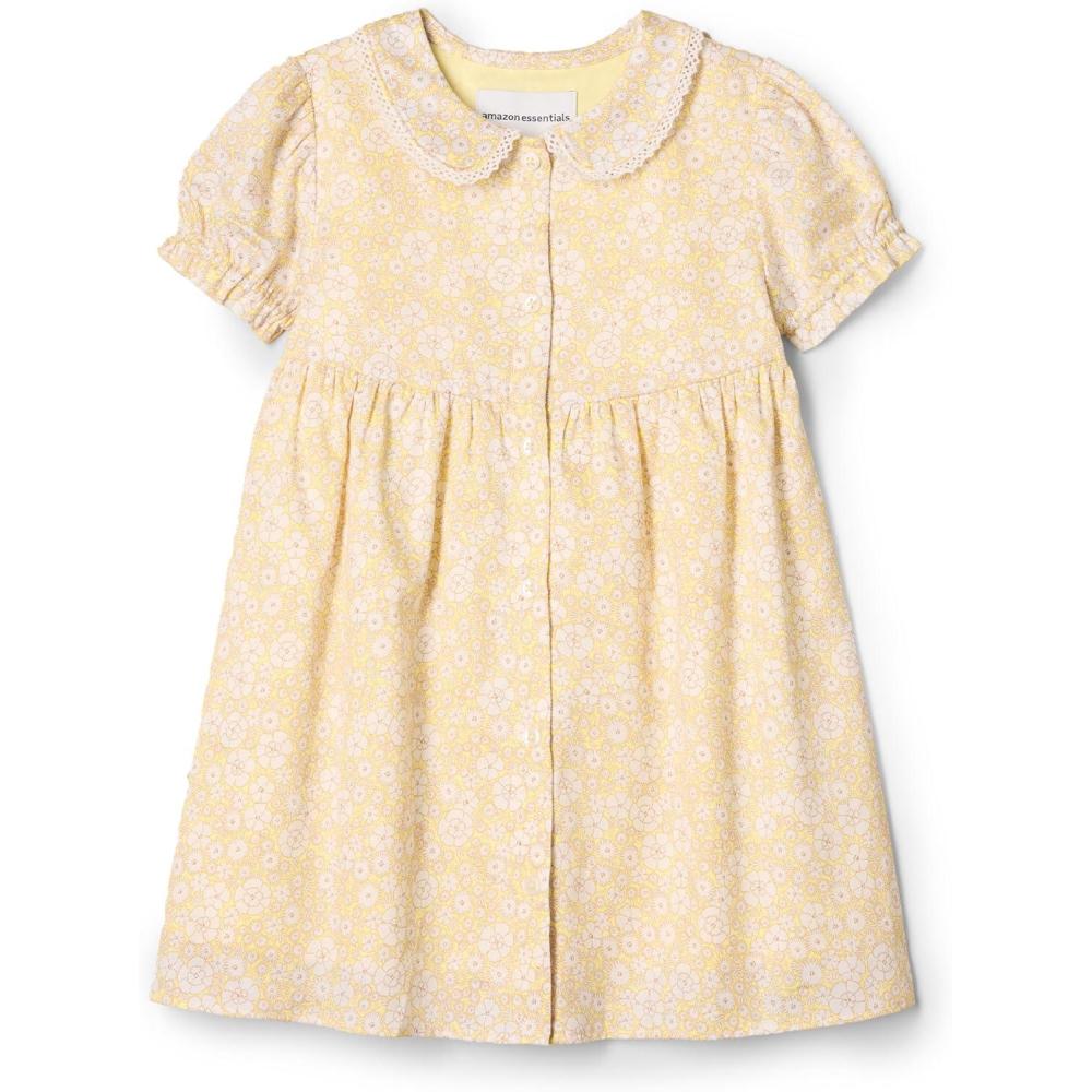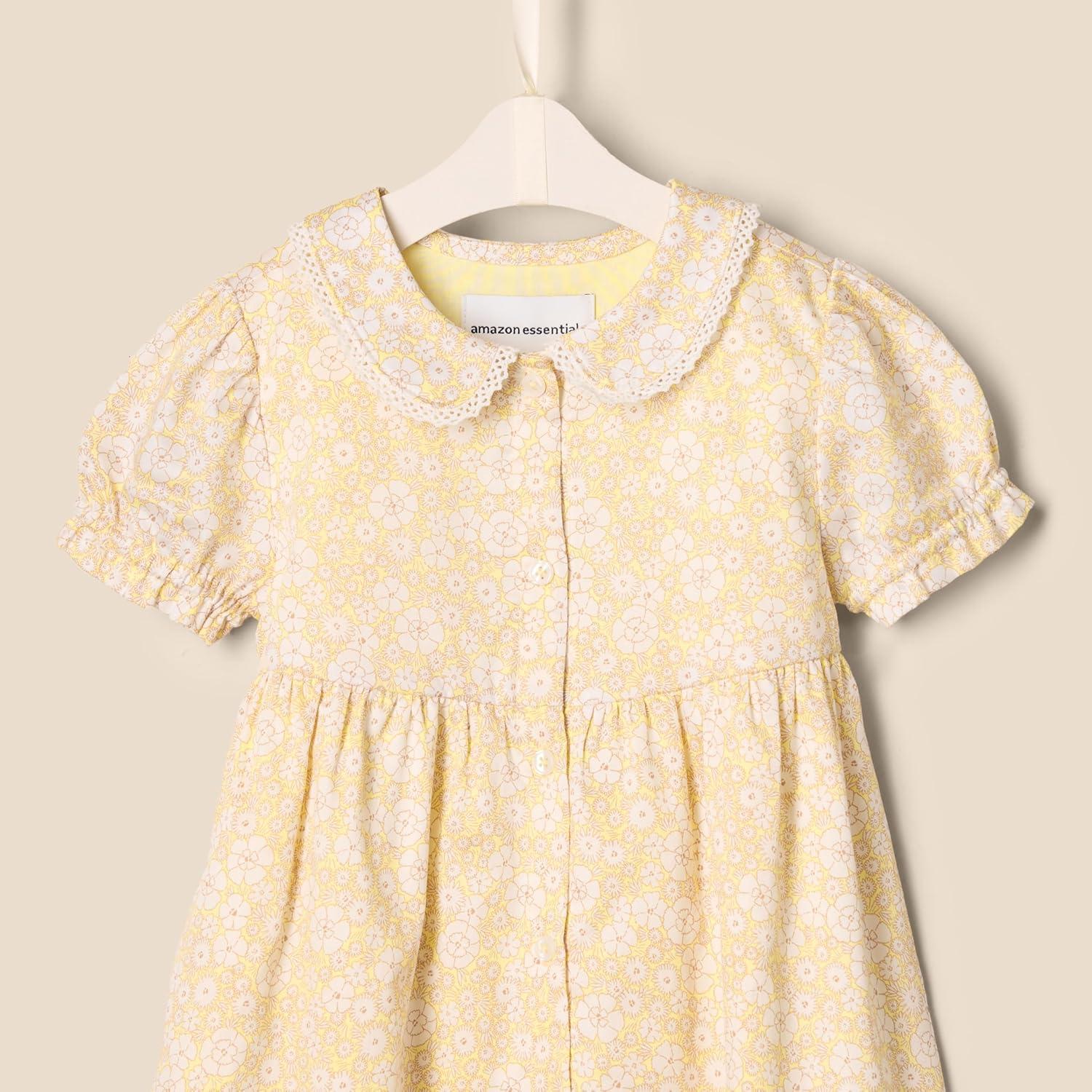Amazon Essentials x Sofia Grainge Toddlers and Baby Girls’ Cotton Sateen Dress with Collar(Light Yellow Ivory Delicate Floral)