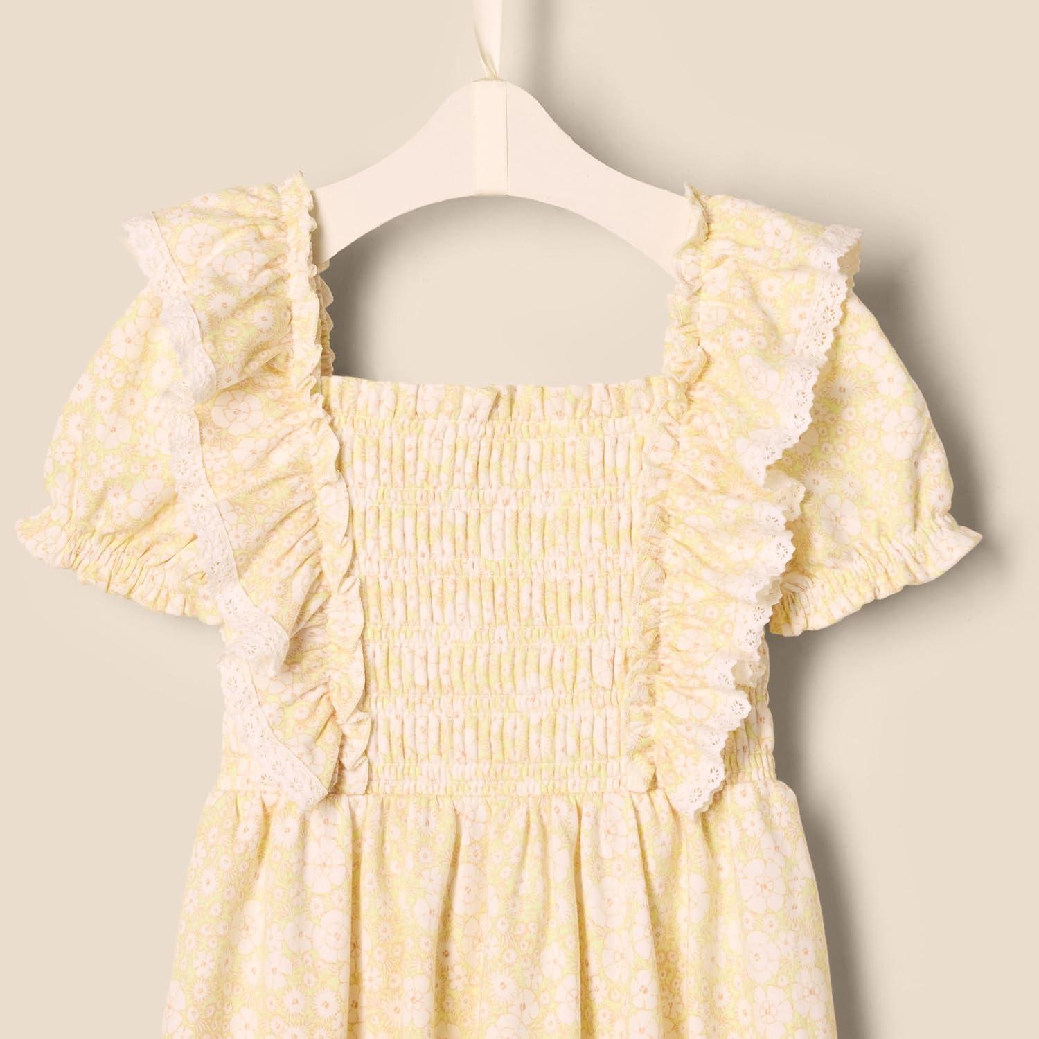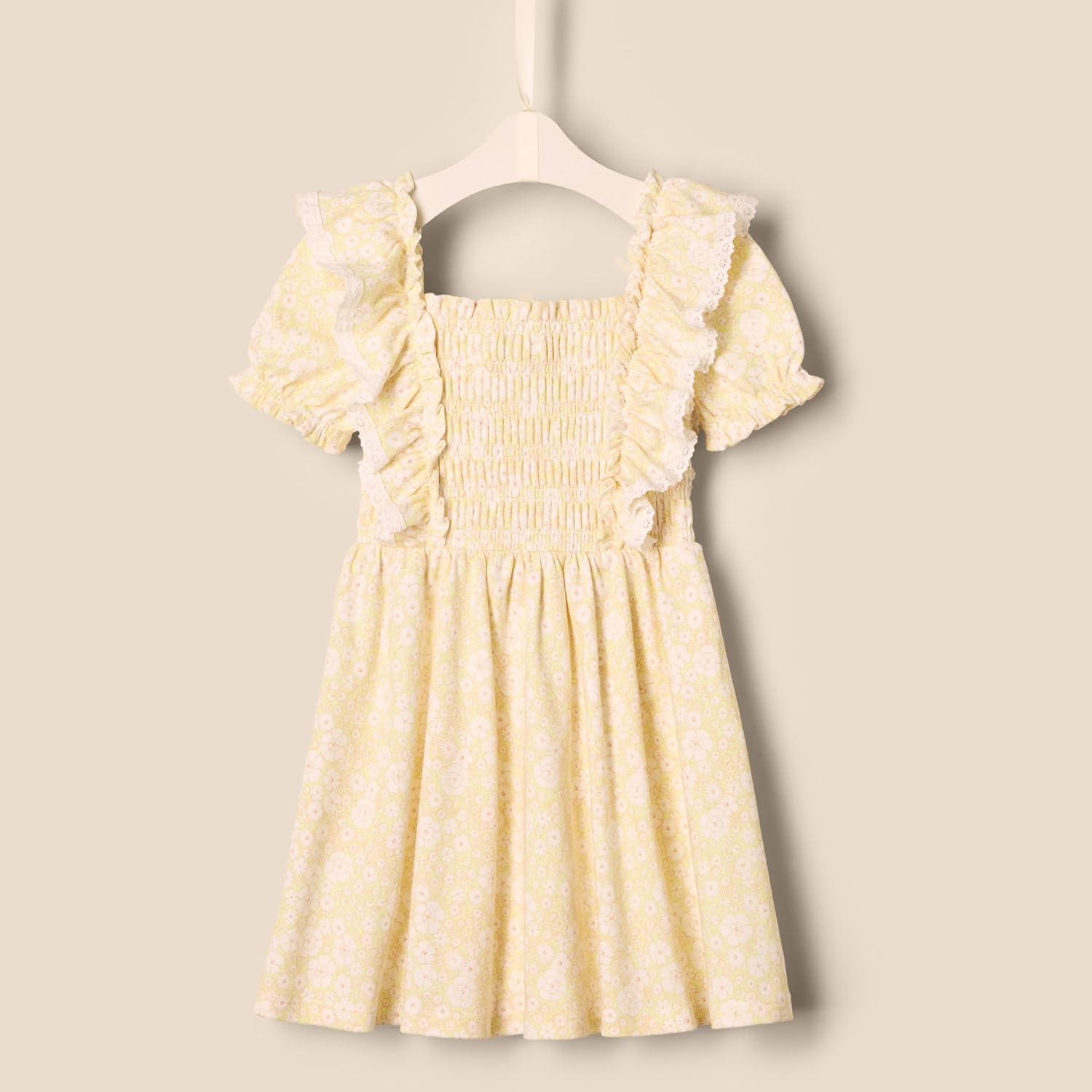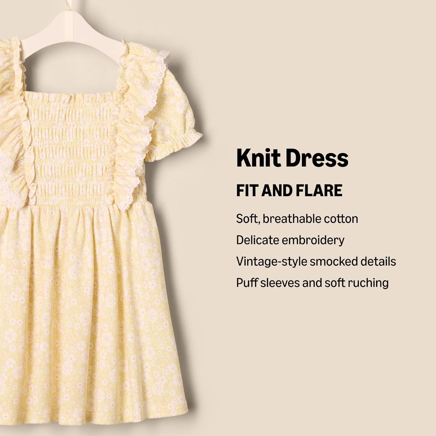 Amazon Essentials x Sofia Grainge Toddlers and Baby Girls' Embroidered Knit Dress(Light Yellow Delicate Floral)