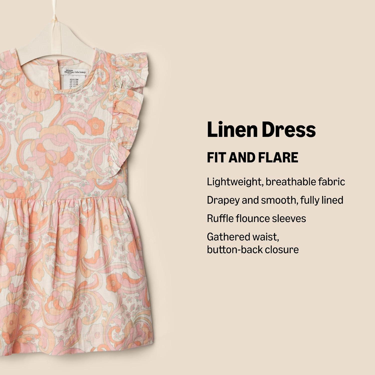 Amazon Essentials x Sofia Grainge Toddlers and Baby Girls’ Linen Dress(Peach Craft Floral)