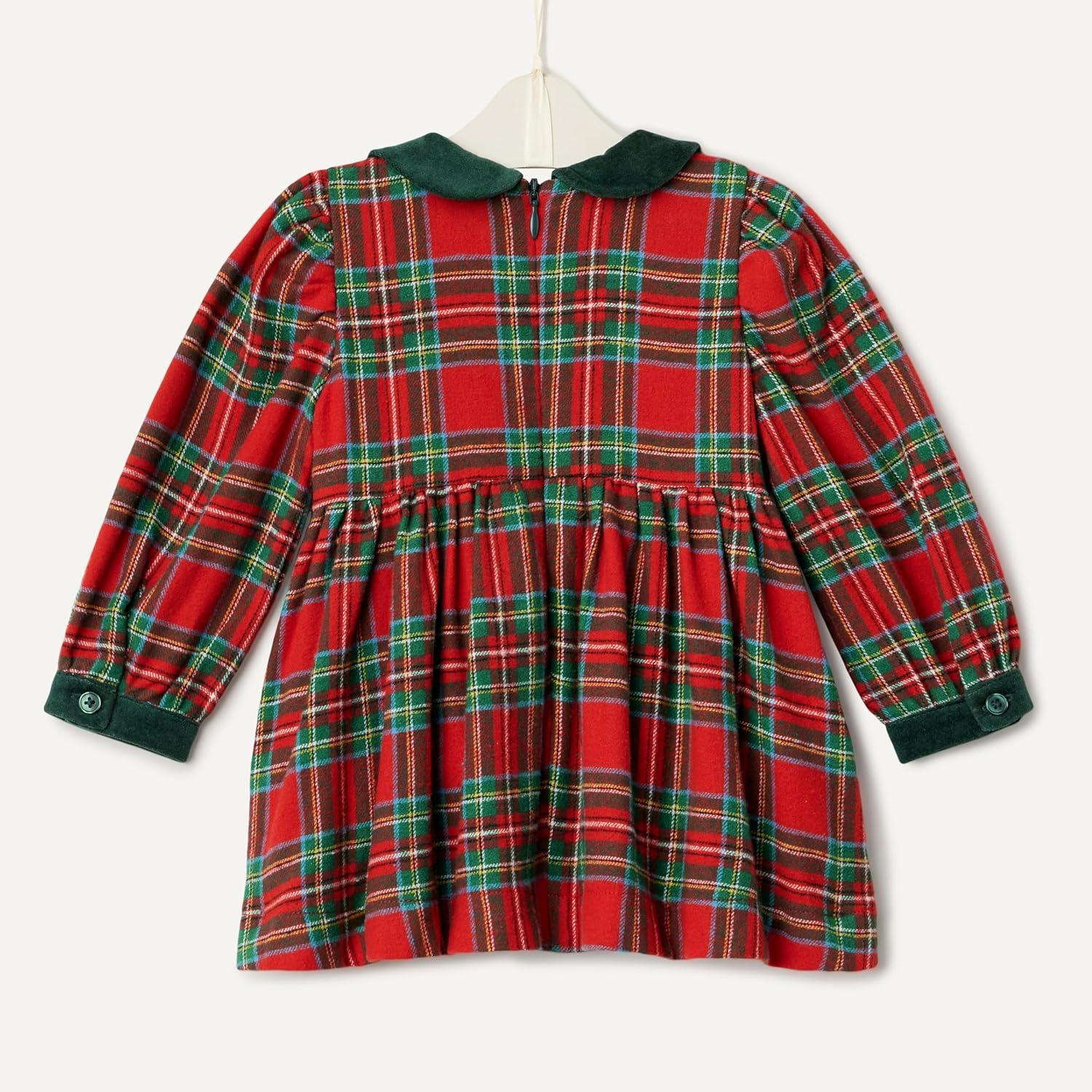Amazon Essentials x Sofia Grainge Toddlers and Baby Girls’ Long Sleeve Flannel Dress(Dark Emerald Green Deep Blue Plaid)