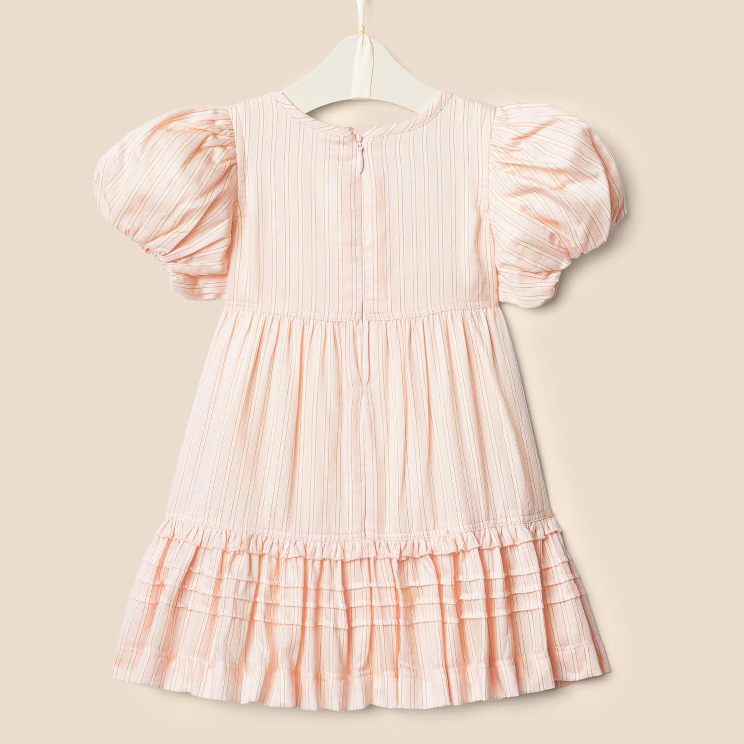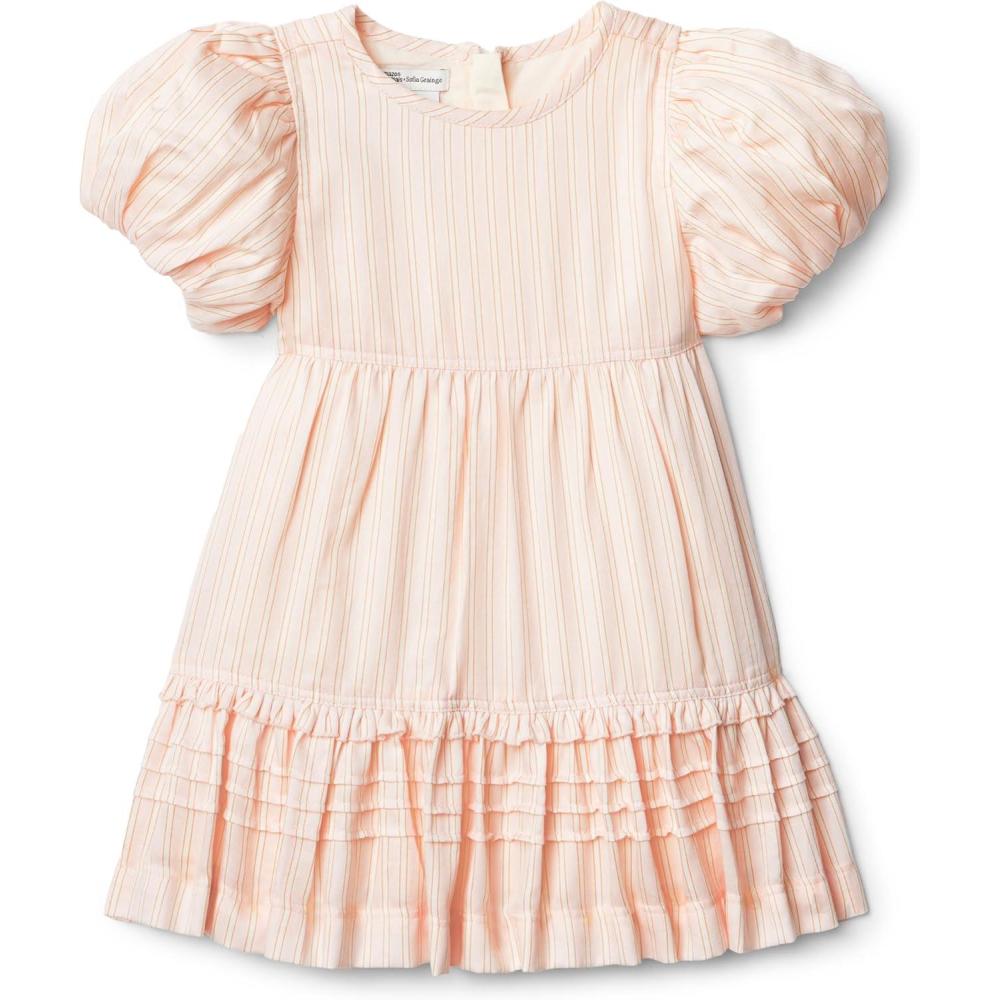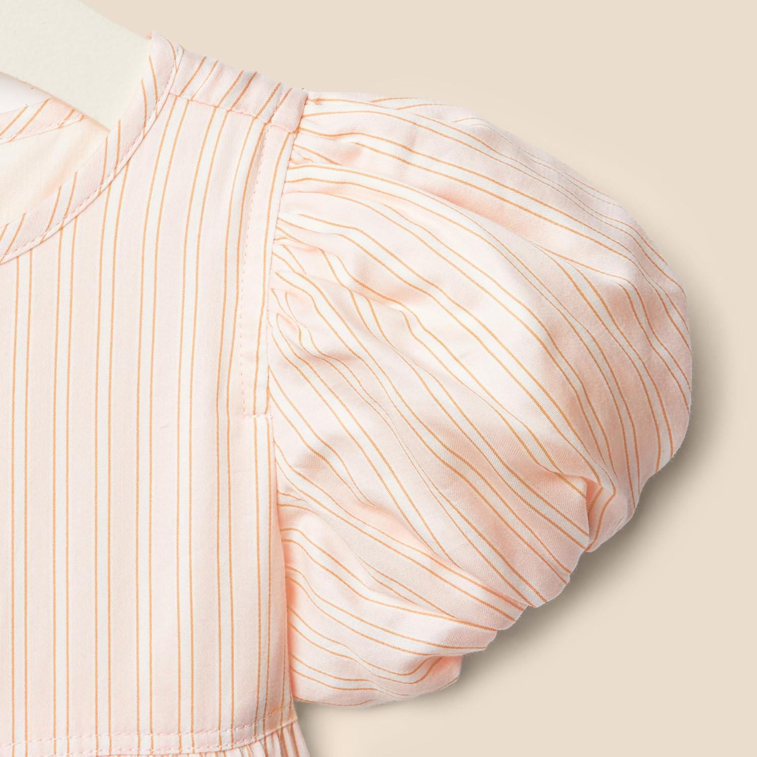 Amazon Essentials x Sofia Grainge Toddlers and Baby Girls' Puff Sleeve Dress(Peach Classic Stripe)
