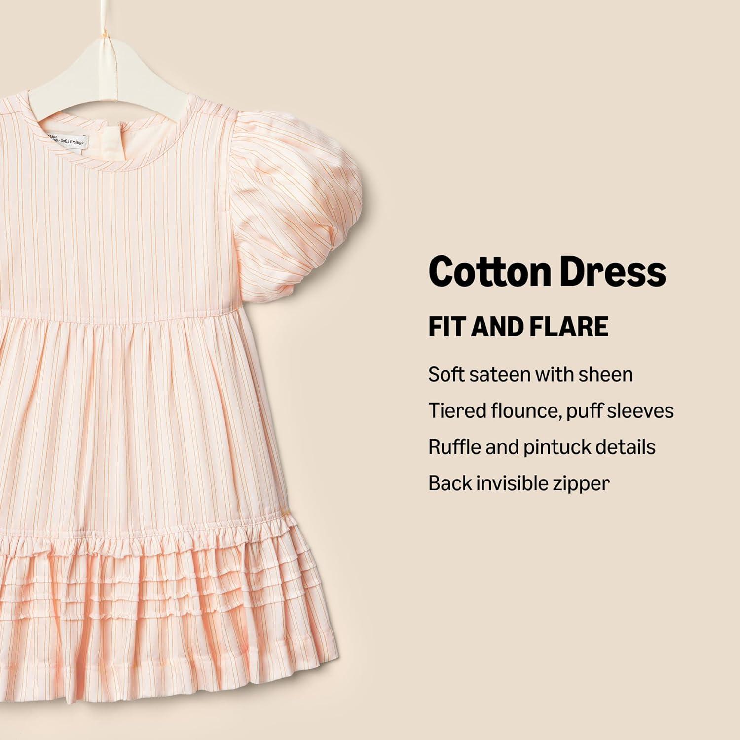 Amazon Essentials x Sofia Grainge Toddlers and Baby Girls’ Puff Sleeve Dress(Peach Classic Stripe)