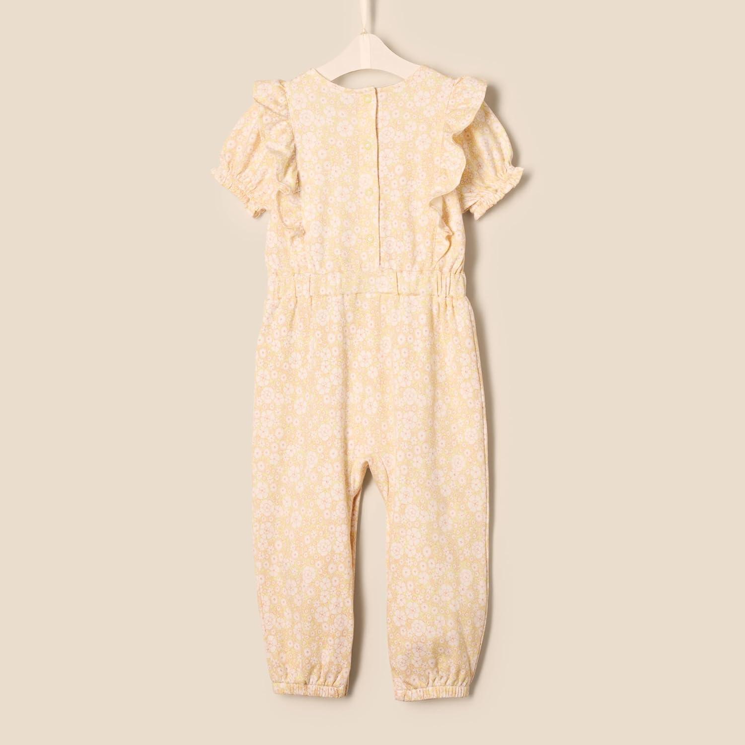 Amazon Essentials x Sofia Grainge Toddlers and Baby Girls' Ruffle Romper(Light Yellow Delicate Floral)