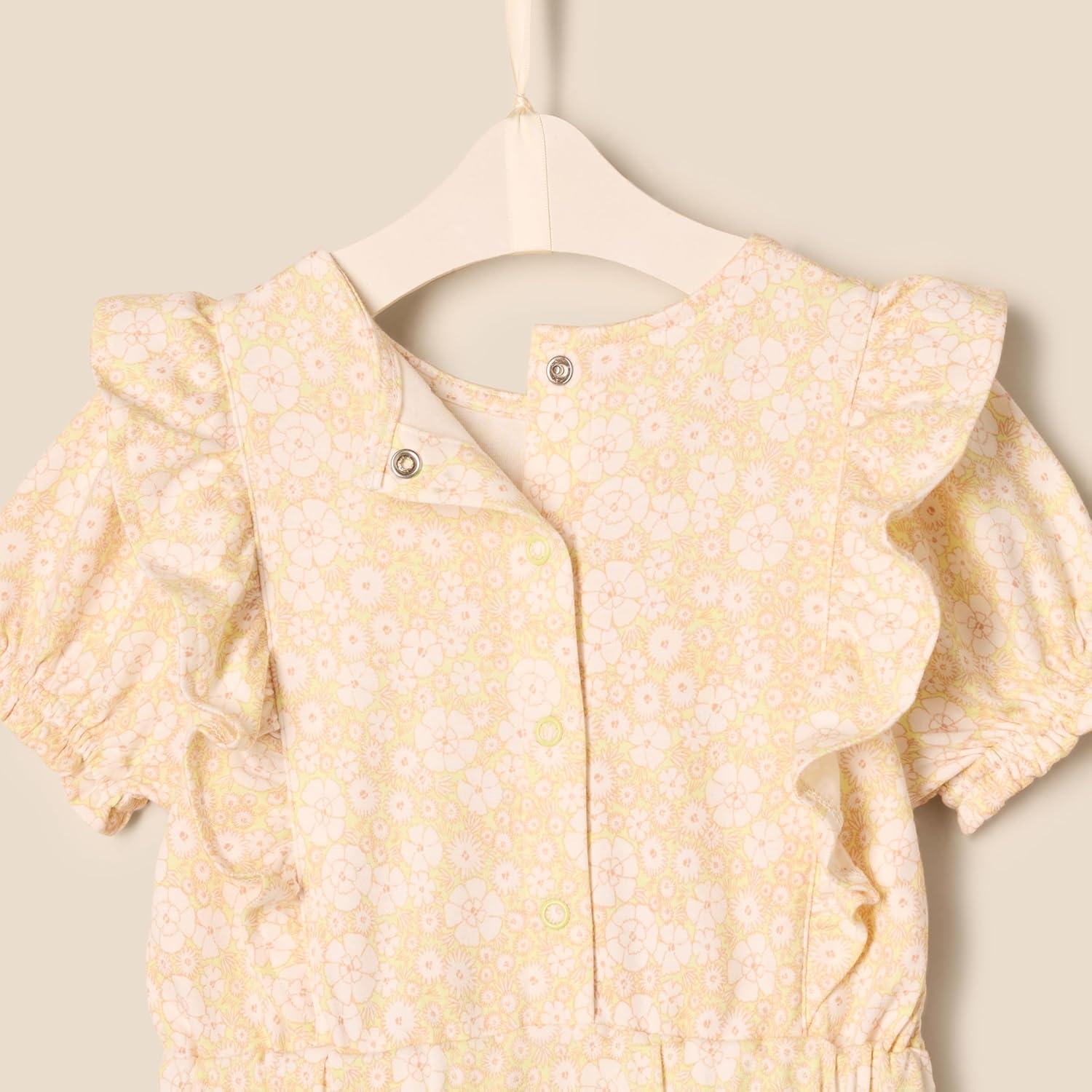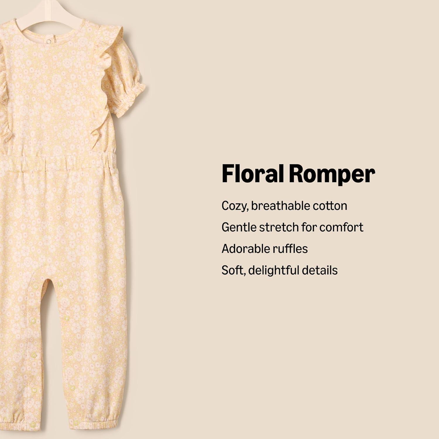 Amazon Essentials x Sofia Grainge Toddlers and Baby Girls’ Ruffle Romper(Light Yellow Delicate Floral)