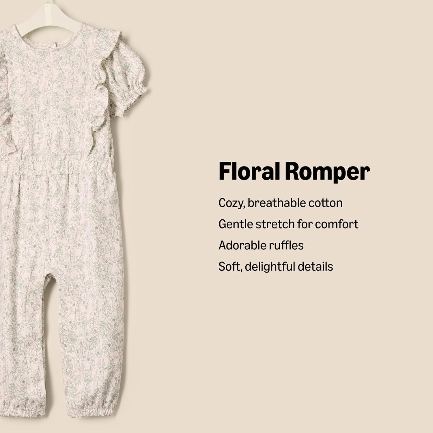 Amazon Essentials x Sofia Grainge Toddlers and Baby Girls’ Ruffle Romper(Pale Pink Sketch Floral)