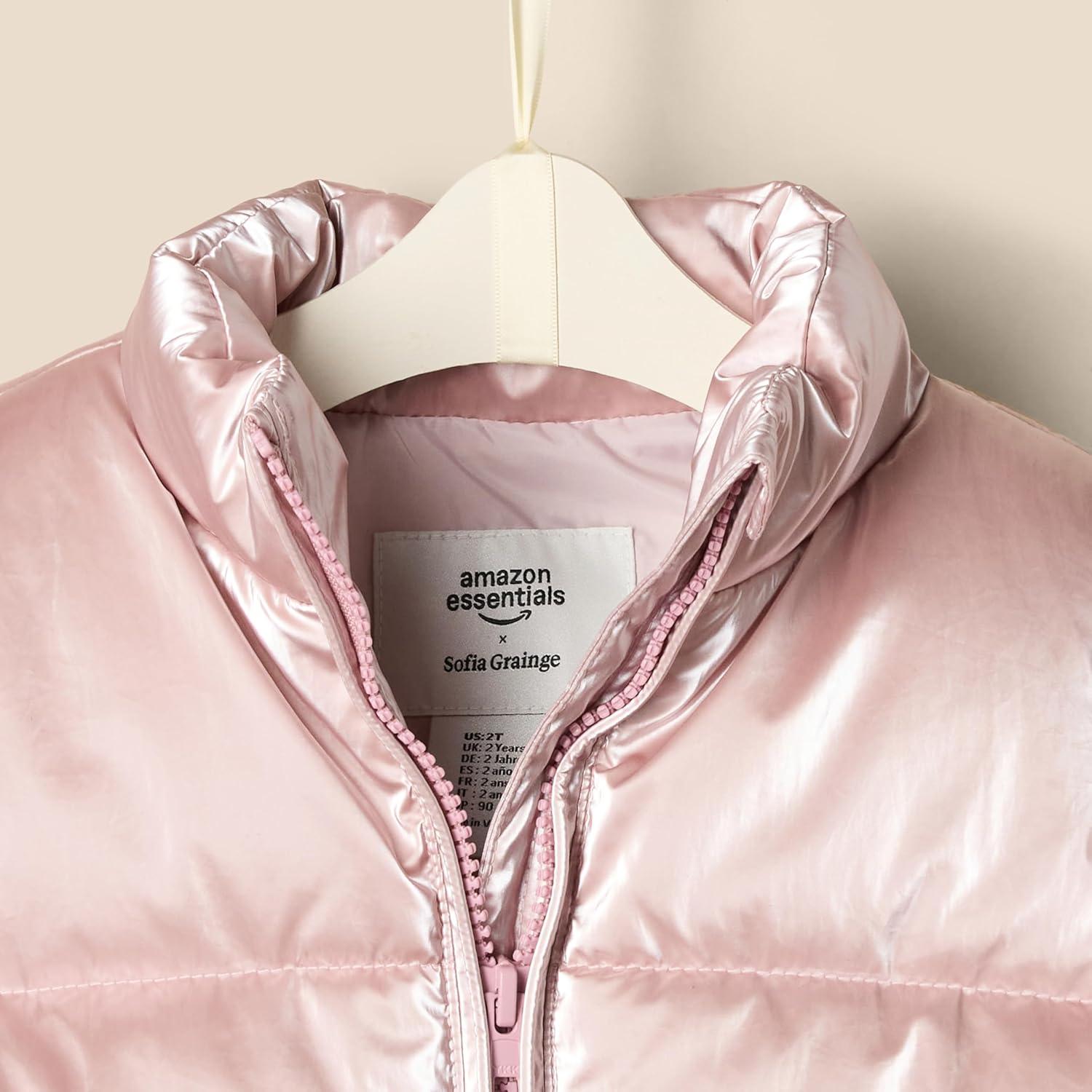 Amazon Essentials x Sofia Grainge Toddlers and Baby Girls’ Taffeta Puffer Jacket(Metallic Light Pink)