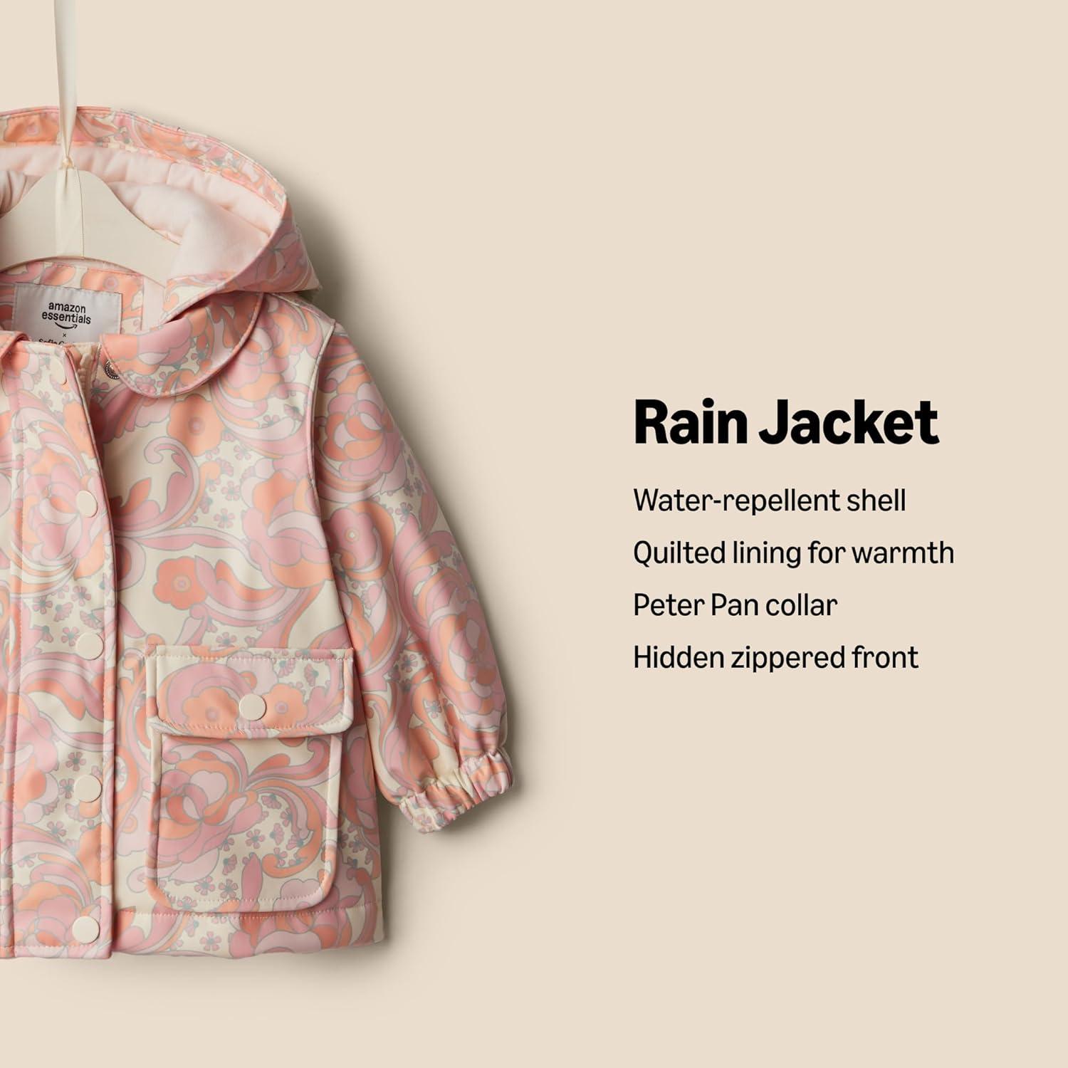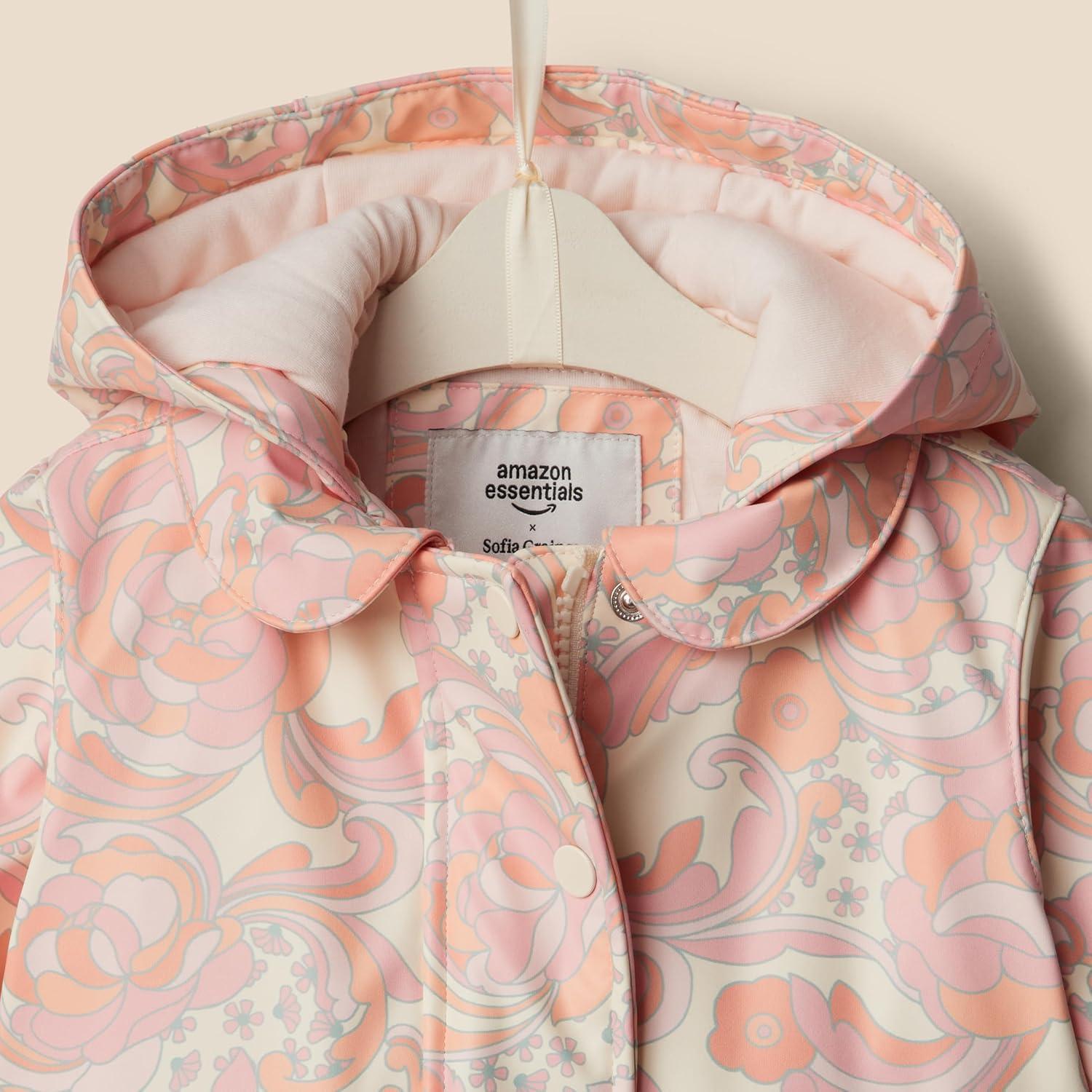 Get your hands on our exclusive Amazon Essentials x Sofia Grainge Toddlers and Baby Girls’ Water-Repellent Rain Jacket(Peach Craft Floral) collection, now at a discounted price.
