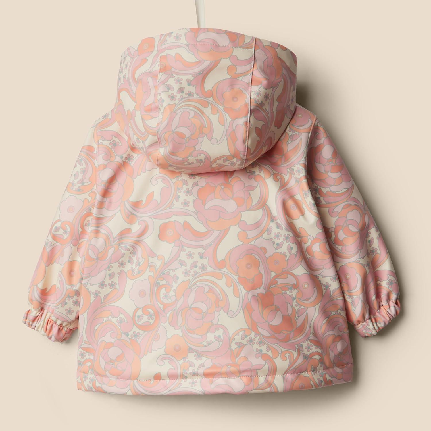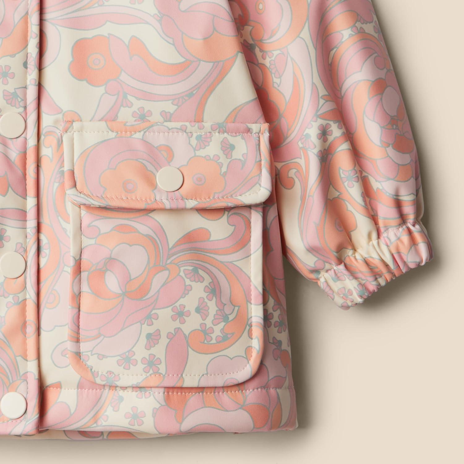 Amazon Essentials x Sofia Grainge Toddlers and Baby Girls’ Water-Repellent Rain Jacket(Peach Craft Floral)