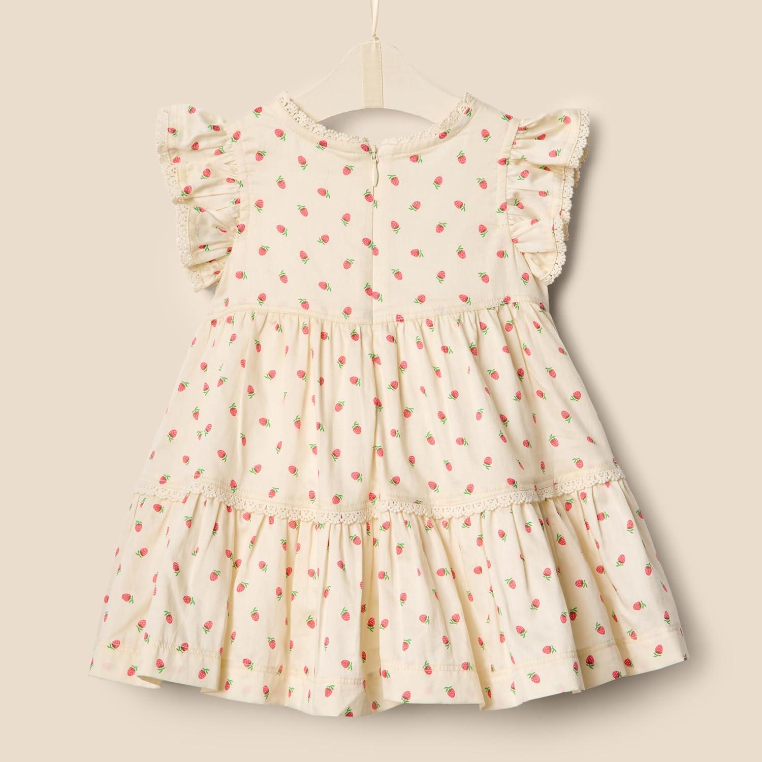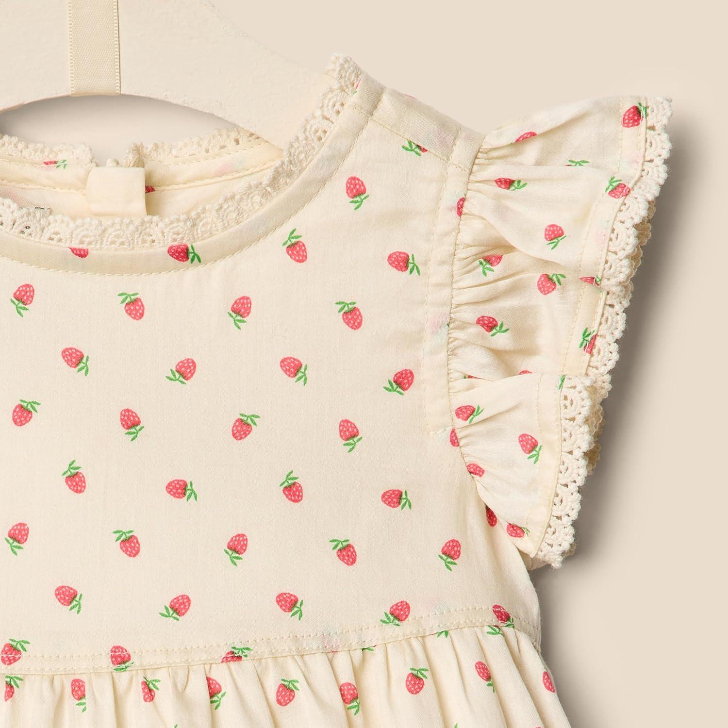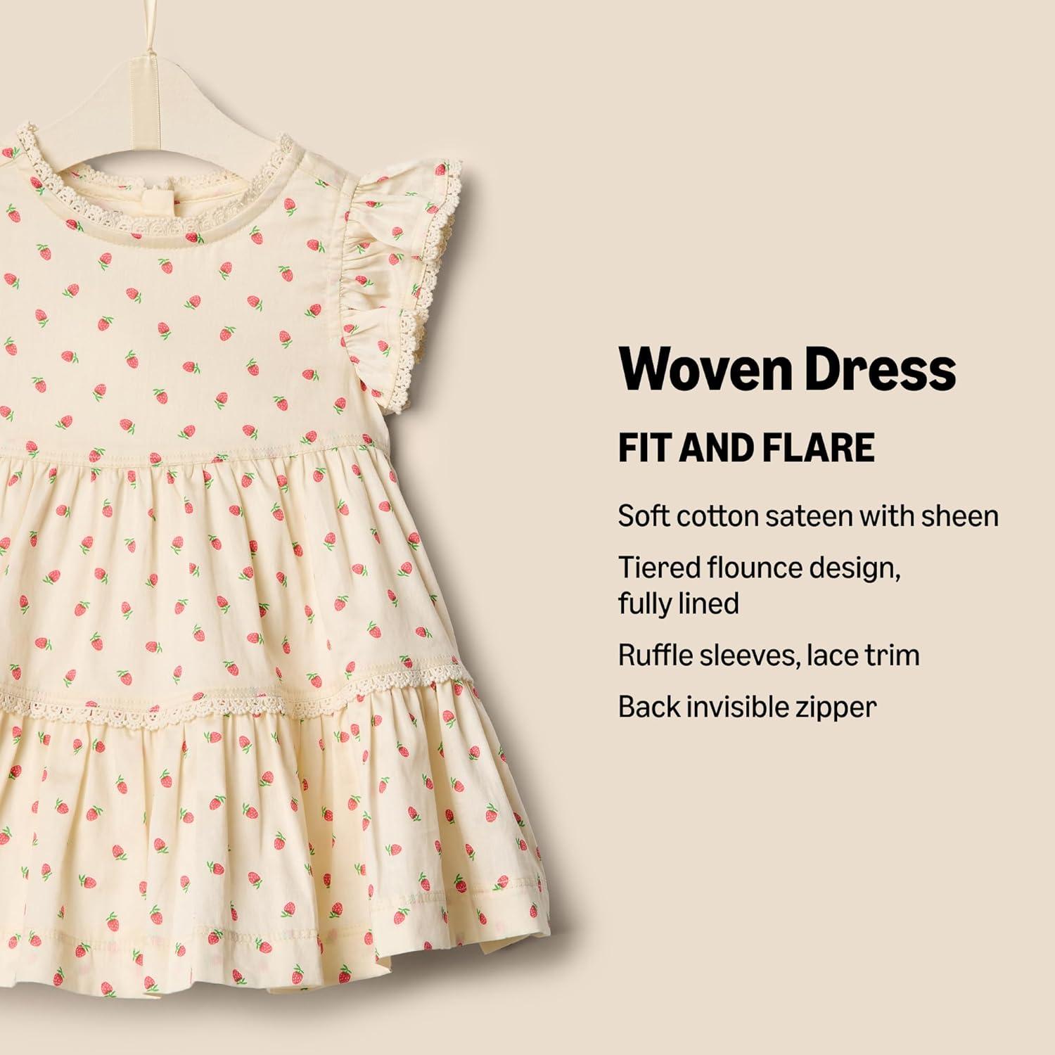 Amazon Essentials x Sofia Grainge Toddlers and Baby Girls’ Woven Ruffle Sleeve Dress(Bright Pink Little Strawberries)