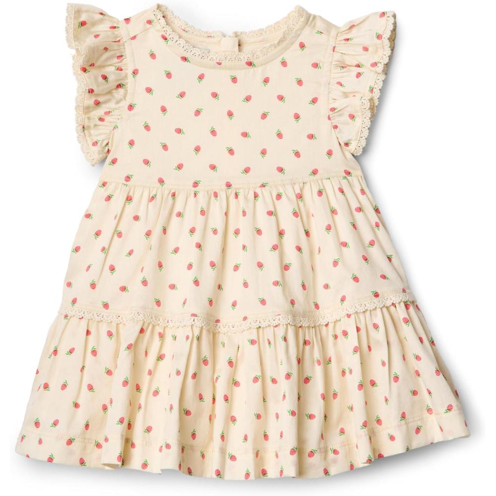 Amazon Essentials x Sofia Grainge Toddlers and Baby Girls' Woven Ruffle Sleeve Dress(Bright Pink Little Strawberries)