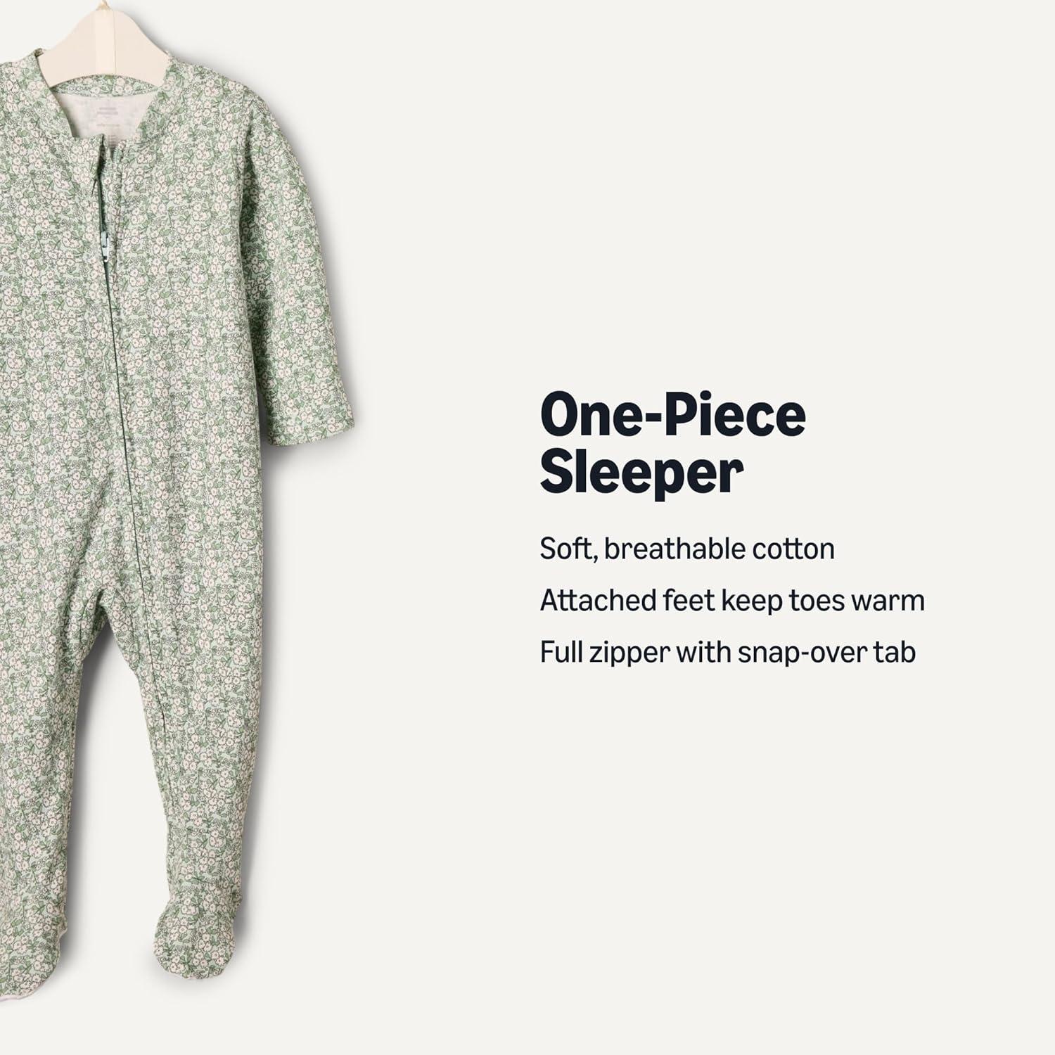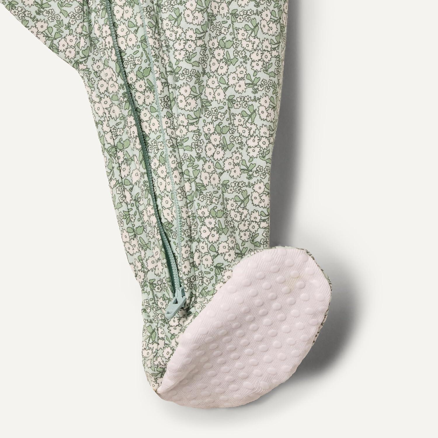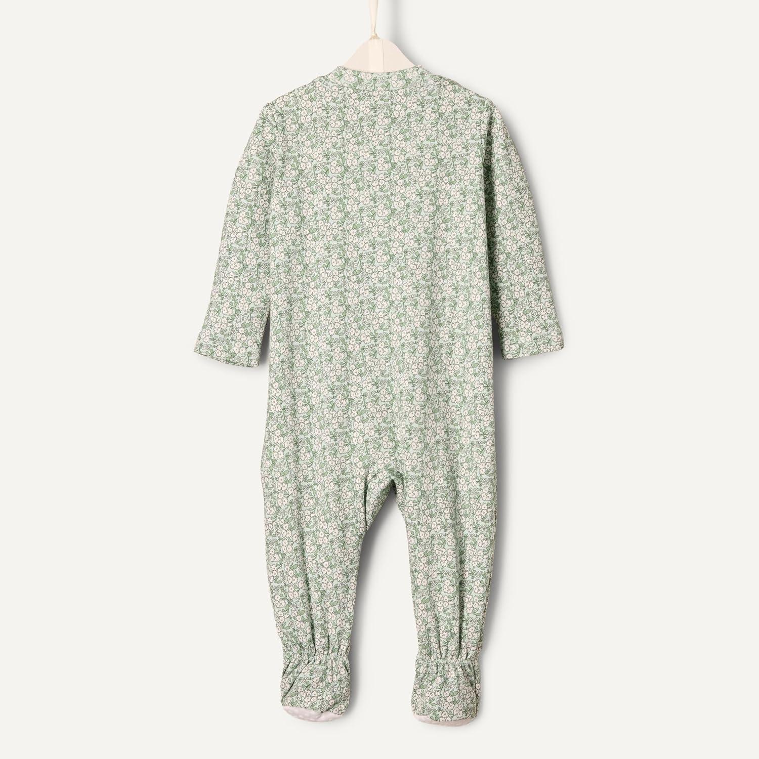 Amazon Essentials x Sofia Grainge Unisex Babies’ Cotton Footed Sleep and Play Bodysuit, Pack of 2(Pale Green/Posey Floral)
