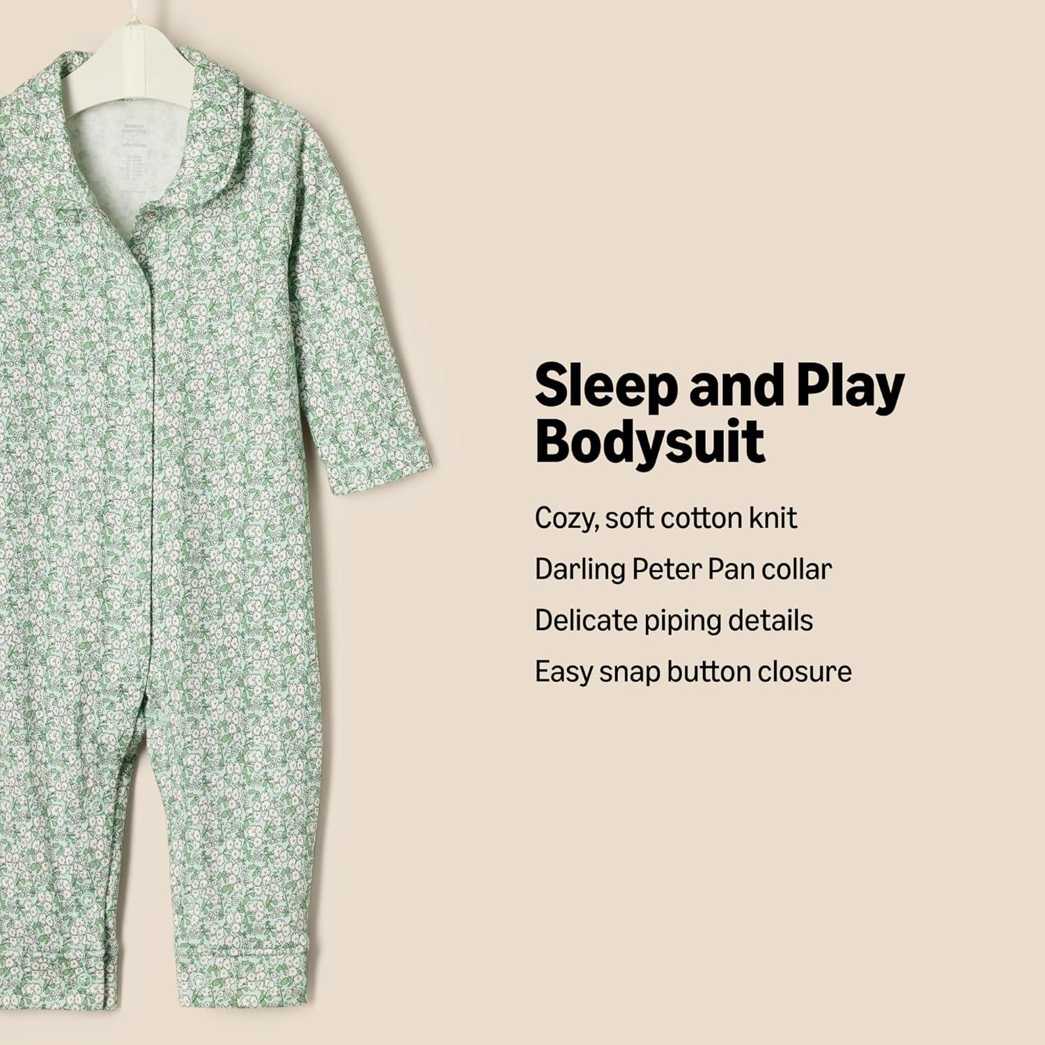 Amazon Essentials x Sofia Grainge Unisex Babies' Footless Sleepsuit, Pack of 2(Pale Green/Posey Floral)