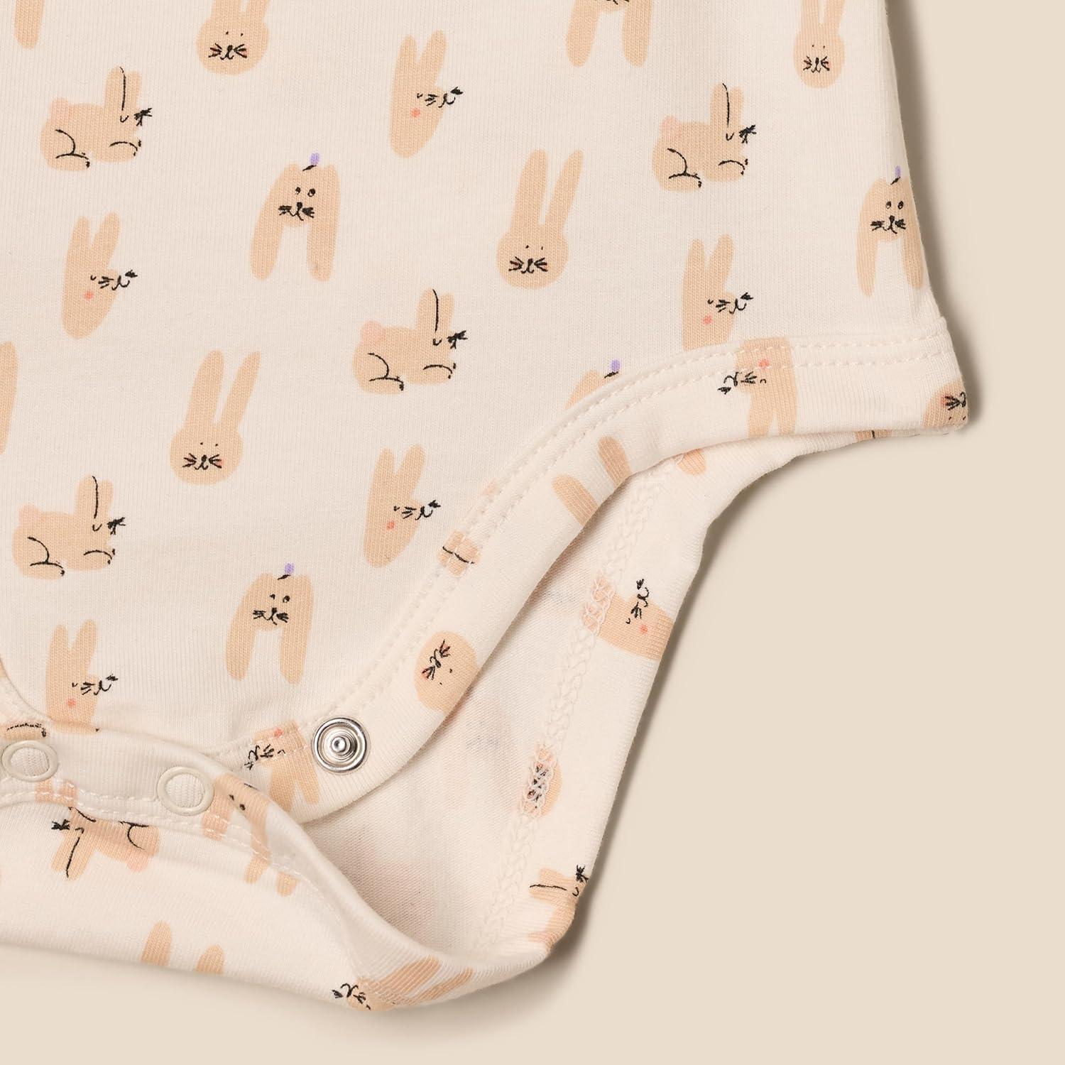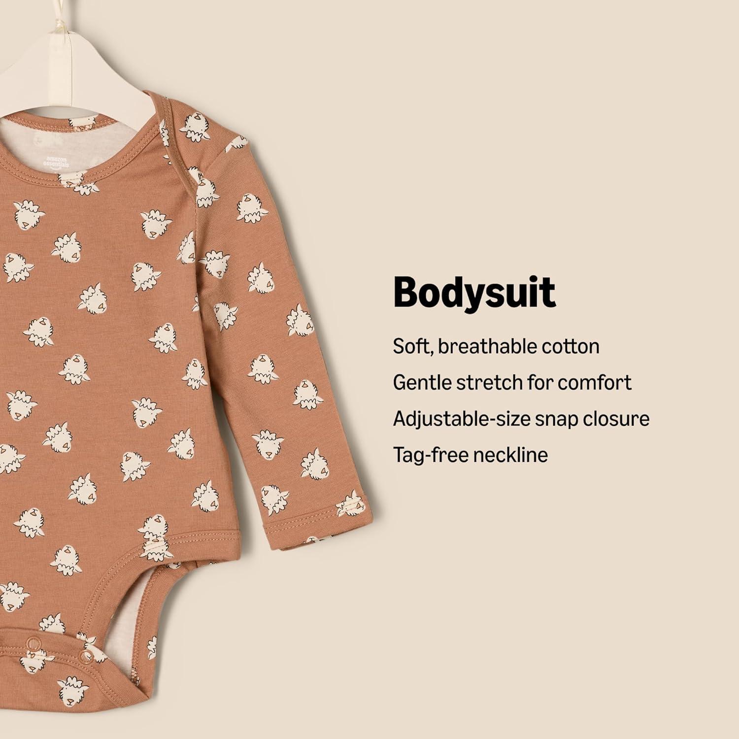 Amazon Essentials x Sofia Grainge Unisex Babies’ Long Sleeve Crew Neck Bodysuit, Pack of 3(Ivory/Lamb Faces/Rabbits)