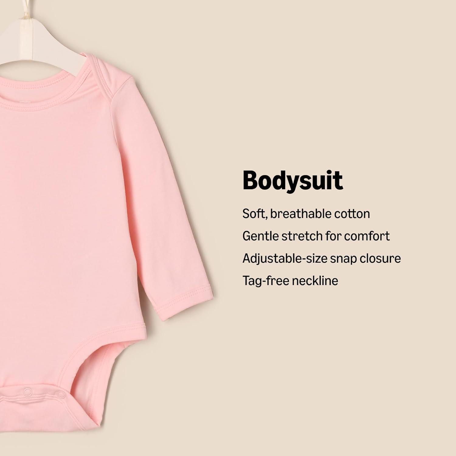 Amazon Essentials x Sofia Grainge Unisex Babies’ Long Sleeve Crew Neck Bodysuit, Pack of 3(Ivory/Pink/Terracotta)