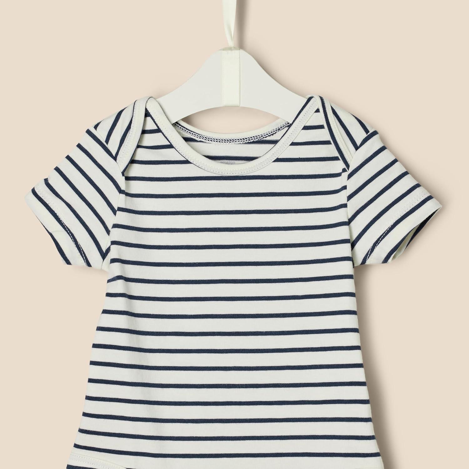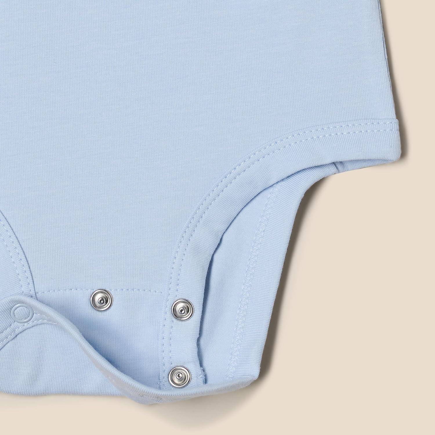 Amazon Essentials x Sofia Grainge Unisex Babies’ Short Sleeve Crewneck Bodysuit, Pack of 3(Dark Navy/Ivory/Light Blue)