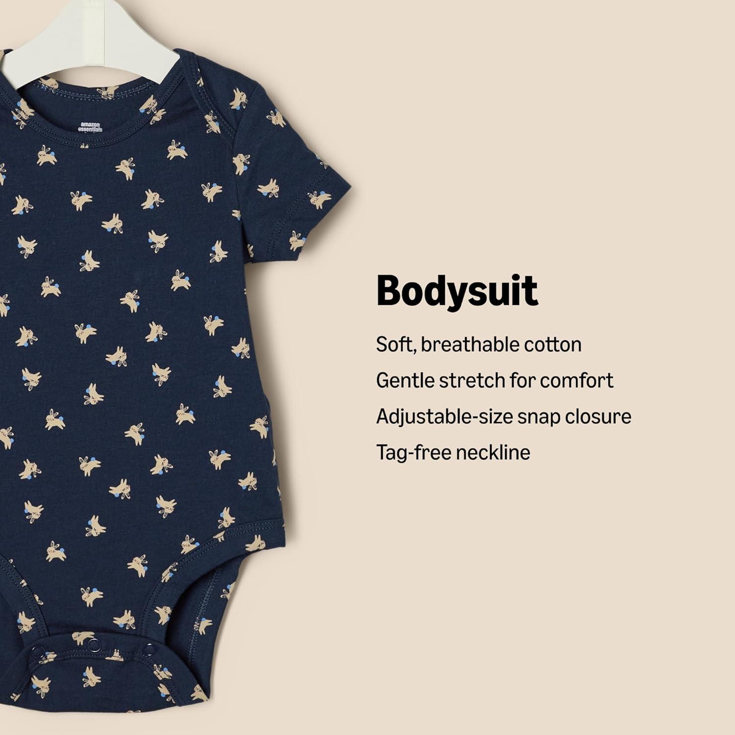 Amazon Essentials x Sofia Grainge Unisex Babies’ Short Sleeve Crewneck Bodysuit, Pack of 3(Bunnies/Light Blue/Stripe)