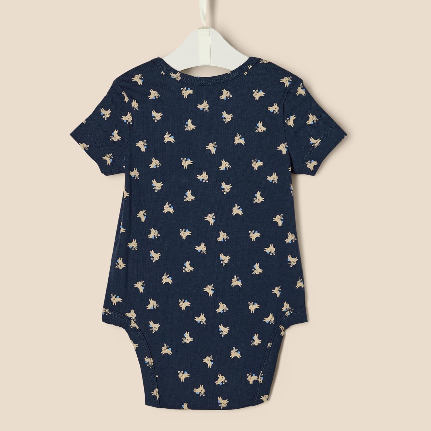 Amazon Essentials x Sofia Grainge Unisex Babies' Short Sleeve Crewneck Bodysuit, Pack of 3(Bunnies/Light Blue/Stripe)