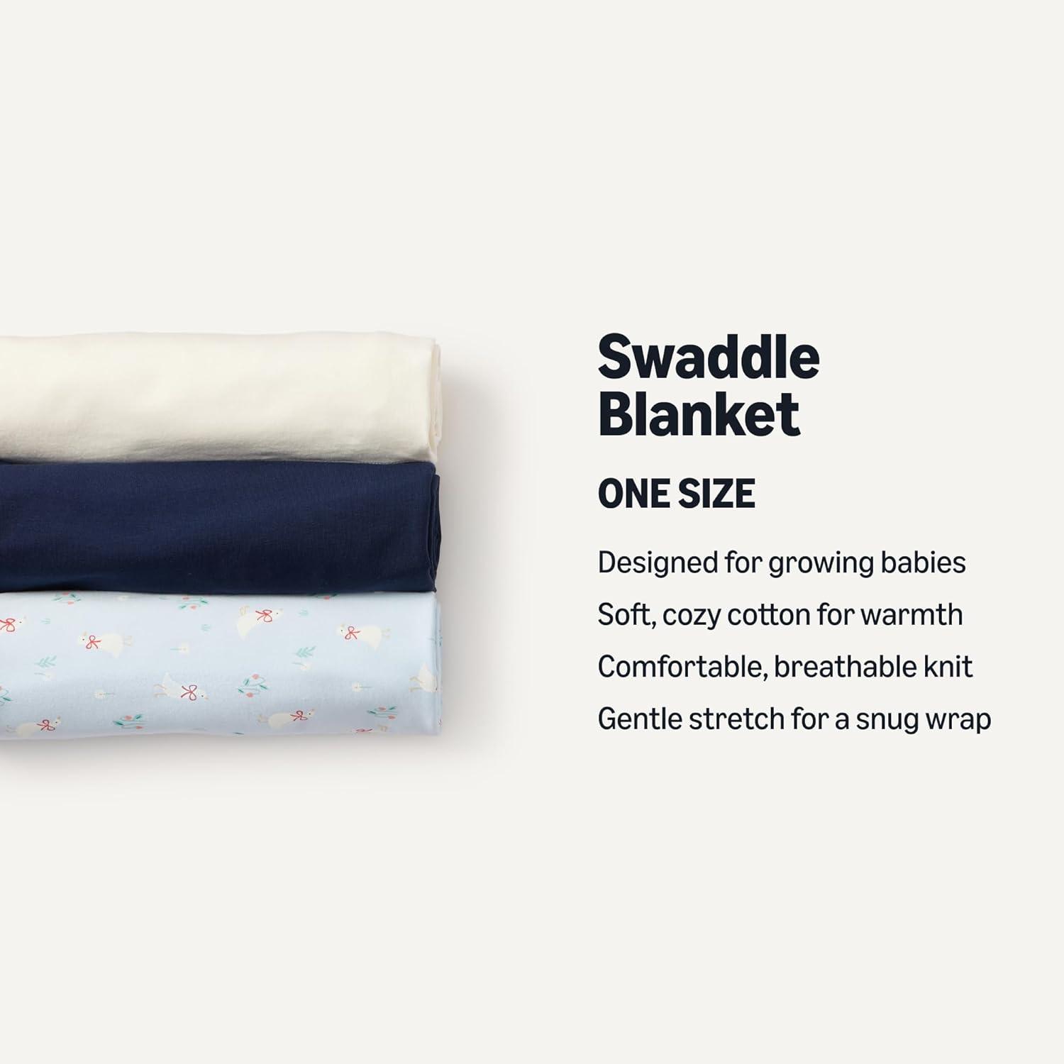 Amazon Essentials x Sofia Grainge Unisex Babies’ Swaddle Blanket, Pack of 3(Ivory/Navy/Geese)