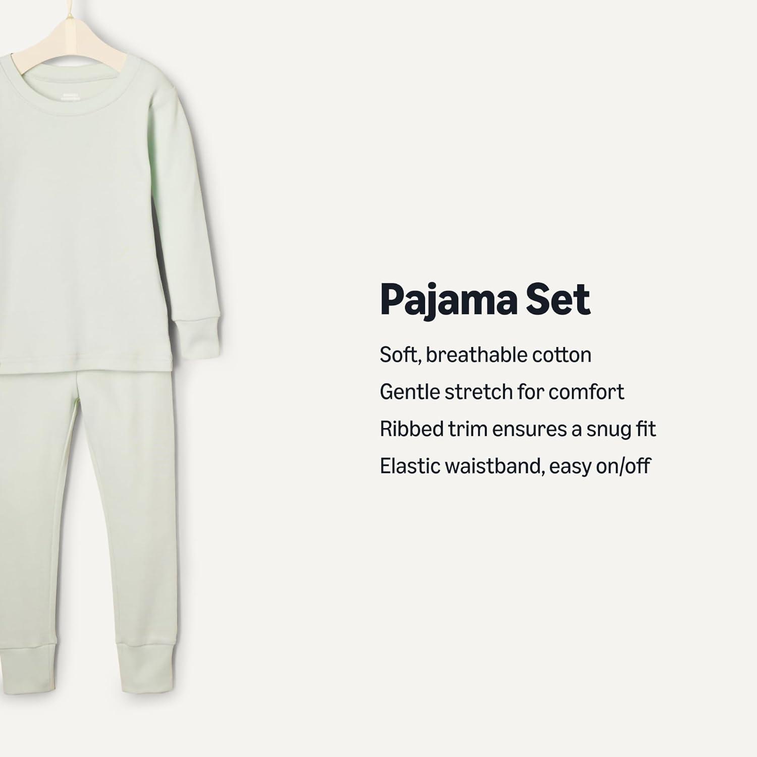 Amazon Essentials x Sofia Grainge Unisex Babies, Toddlers and Kids’ Snug-Fit Cotton Pajamas, Pack of 2(Ivory/Pale Green)