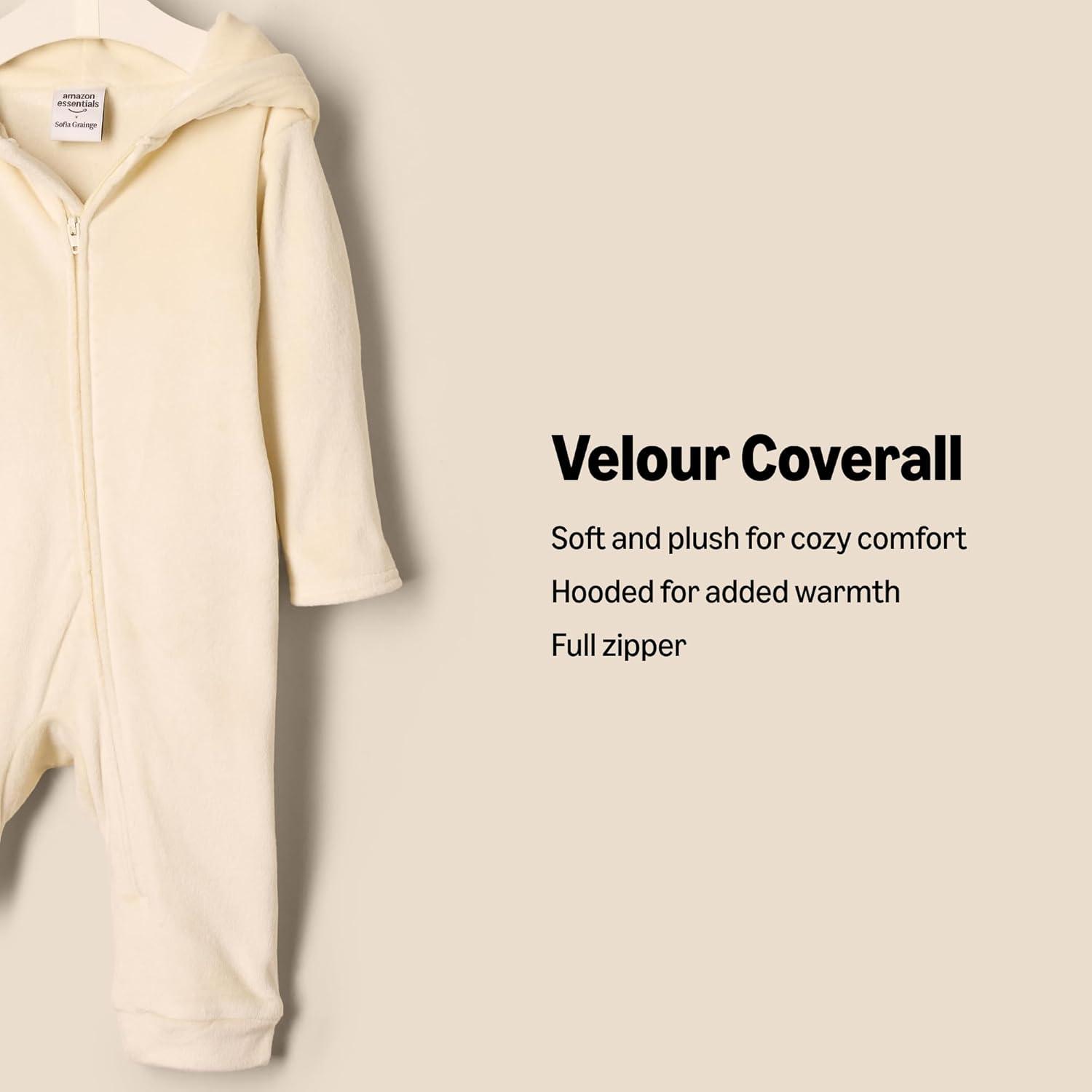 Amazon Essentials x Sofia Grainge Unisex Babies’ Velour Hooded Coverall(Beige)