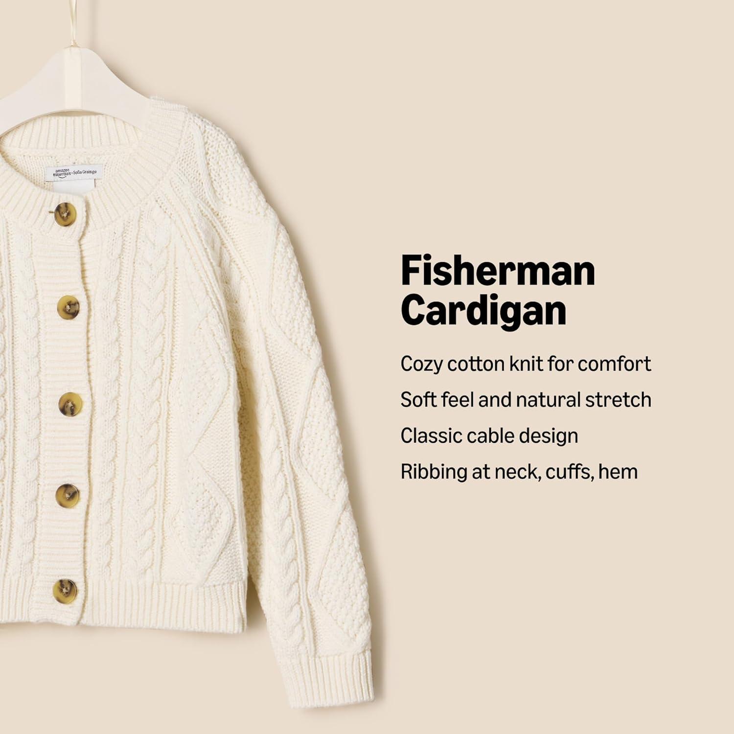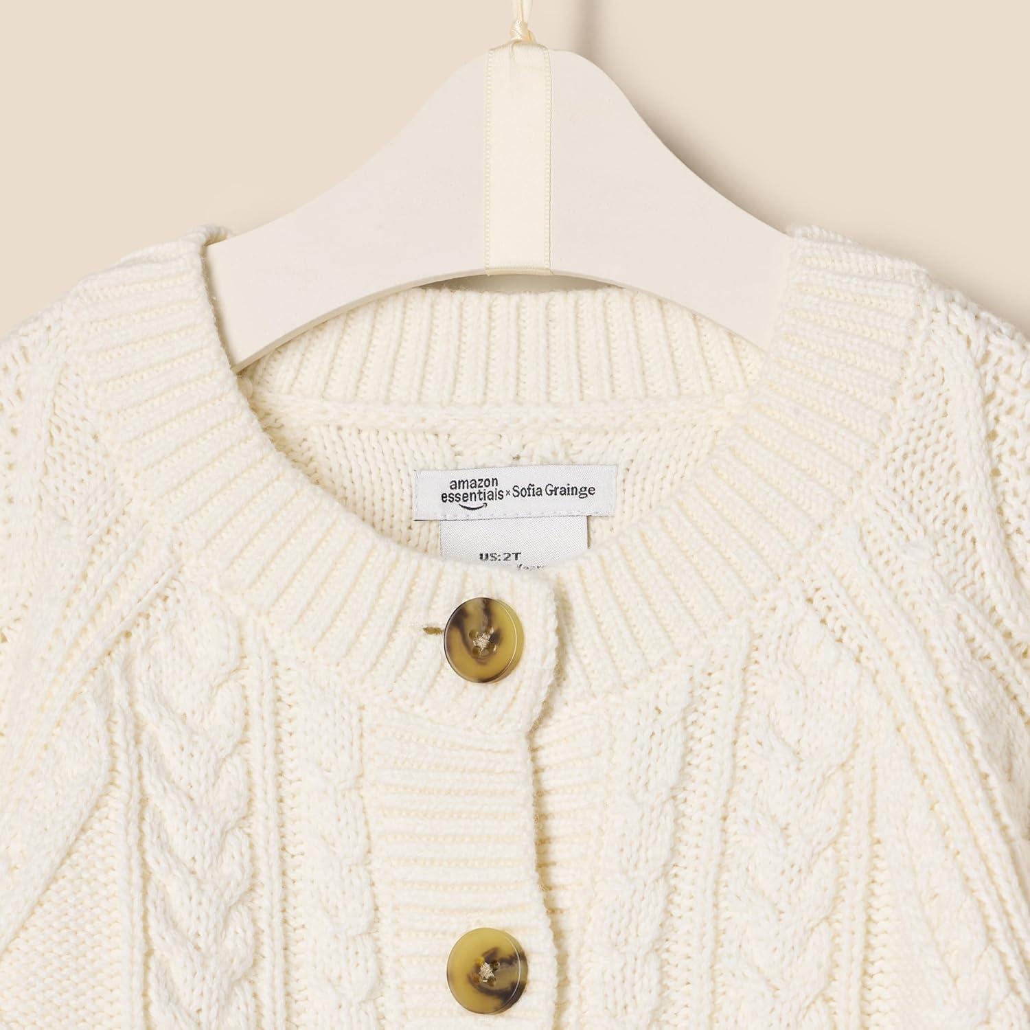 Amazon Essentials x Sofia Grainge Unisex Toddlers and Babies' Fisherman Cardigan Sweater(Ivory)