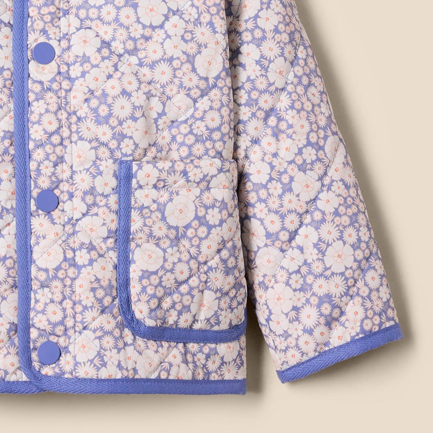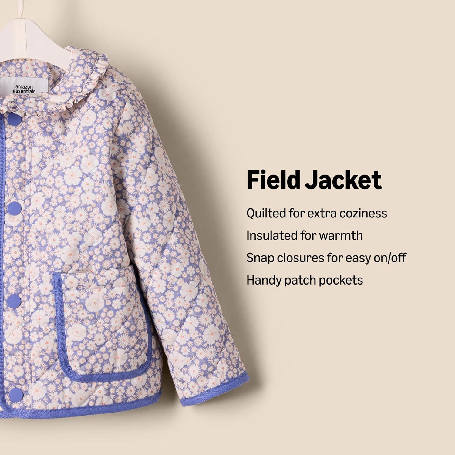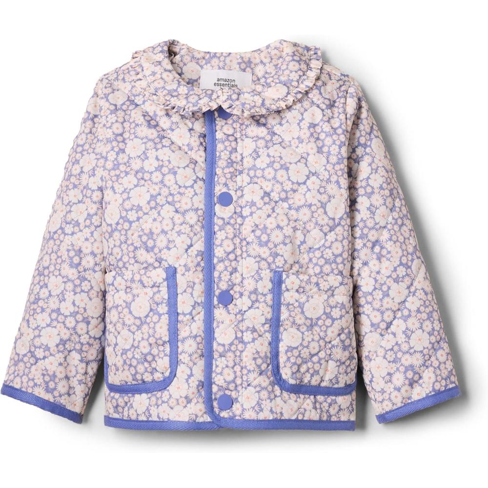Amazon Essentials x Sofia Grainge Unisex Toddlers and Babies’ Midweight Field Jacket with Ruffle(Blue Ivory Delicate Floral)