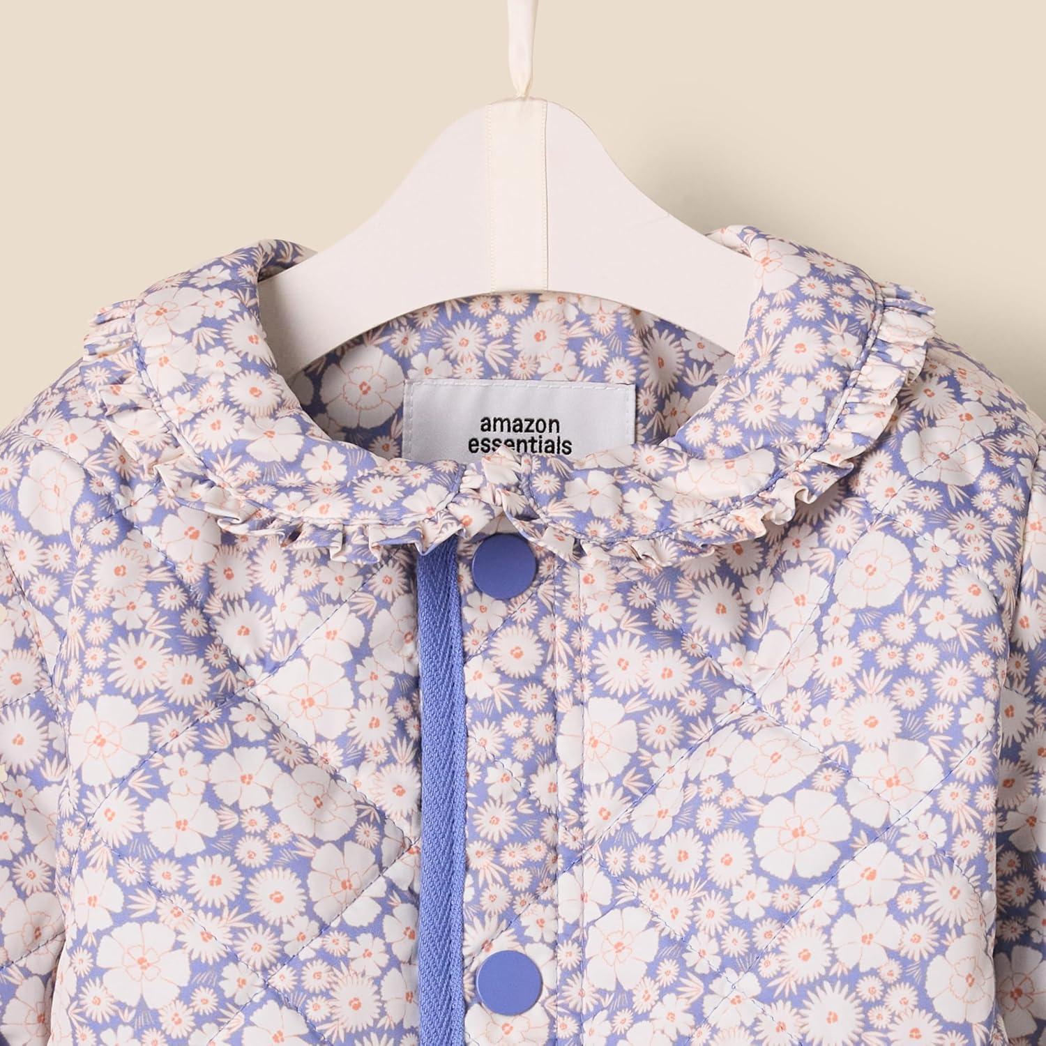 Amazon Essentials x Sofia Grainge Unisex Toddlers and Babies' Midweight Field Jacket with Ruffle(Blue Ivory Delicate Floral)