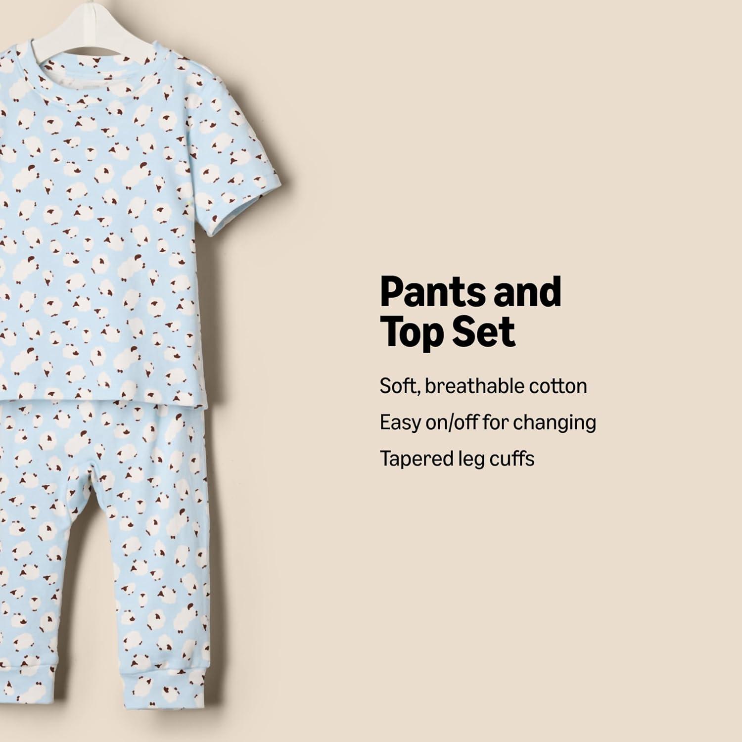 Amazon Essentials x Sofia Grainge Unisex Toddlers and Babies’ Pant & Top Set(Light Blue Lambs)