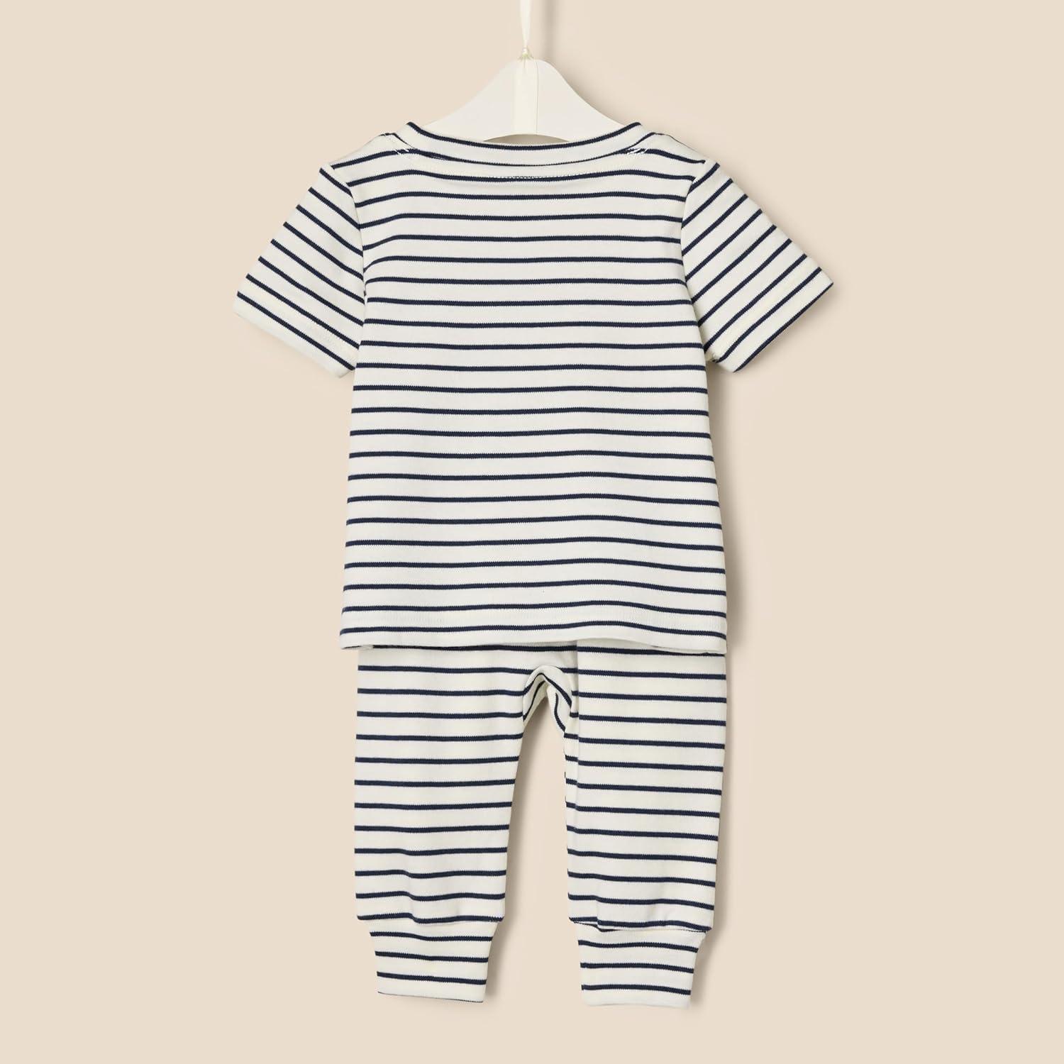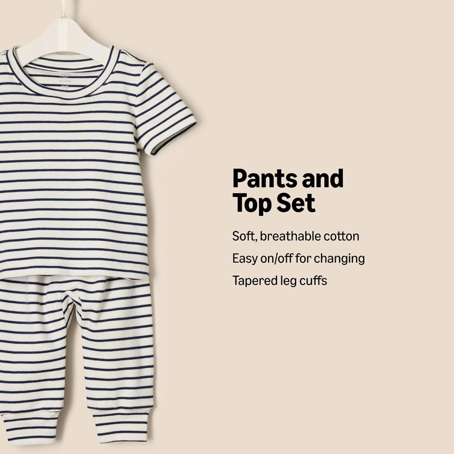 Amazon Essentials x Sofia Grainge Unisex Toddlers and Babies’ Pant & Top Set(Navy Tapered Stripe)