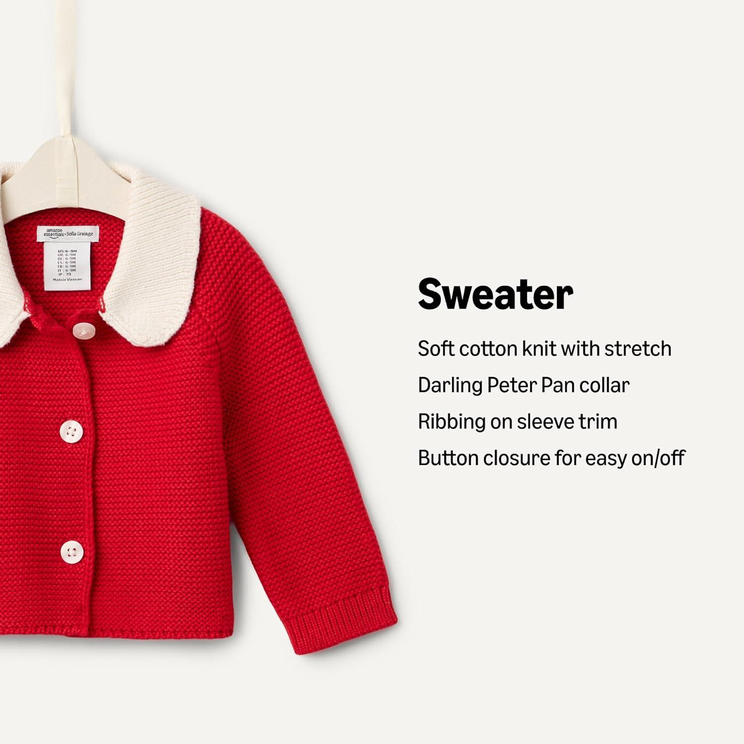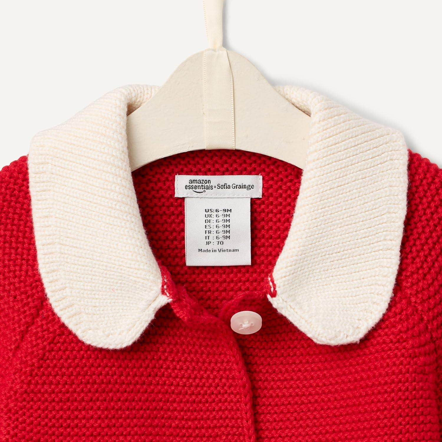 Amazon Essentials x Sofia Grainge Unisex Toddlers and Babies’ Peter Pan Collar Sweater Jacket(Red)