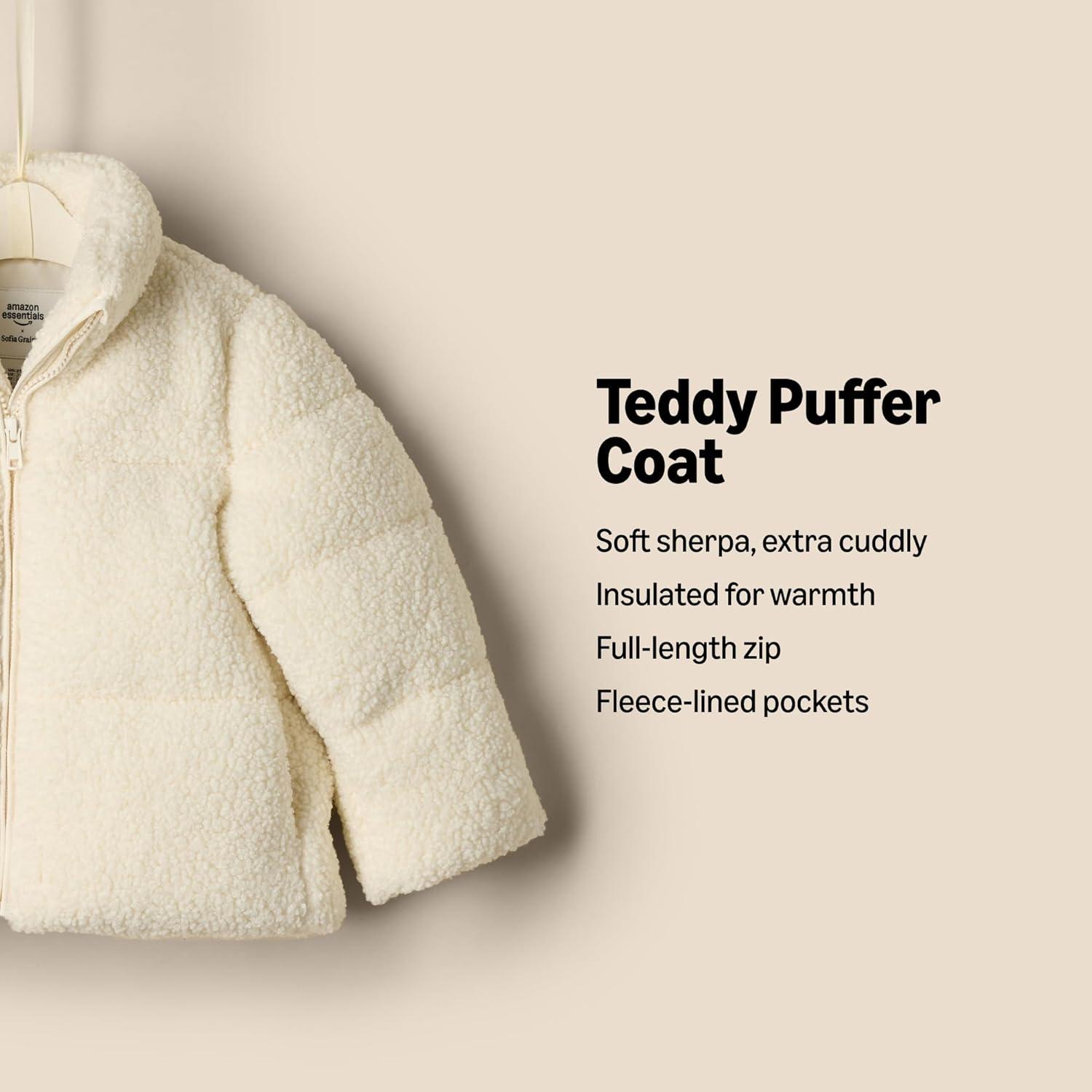 Amazon Essentials x Sofia Grainge Unisex Toddlers and Babies’ Teddy Puffer Jacket(Ivory)